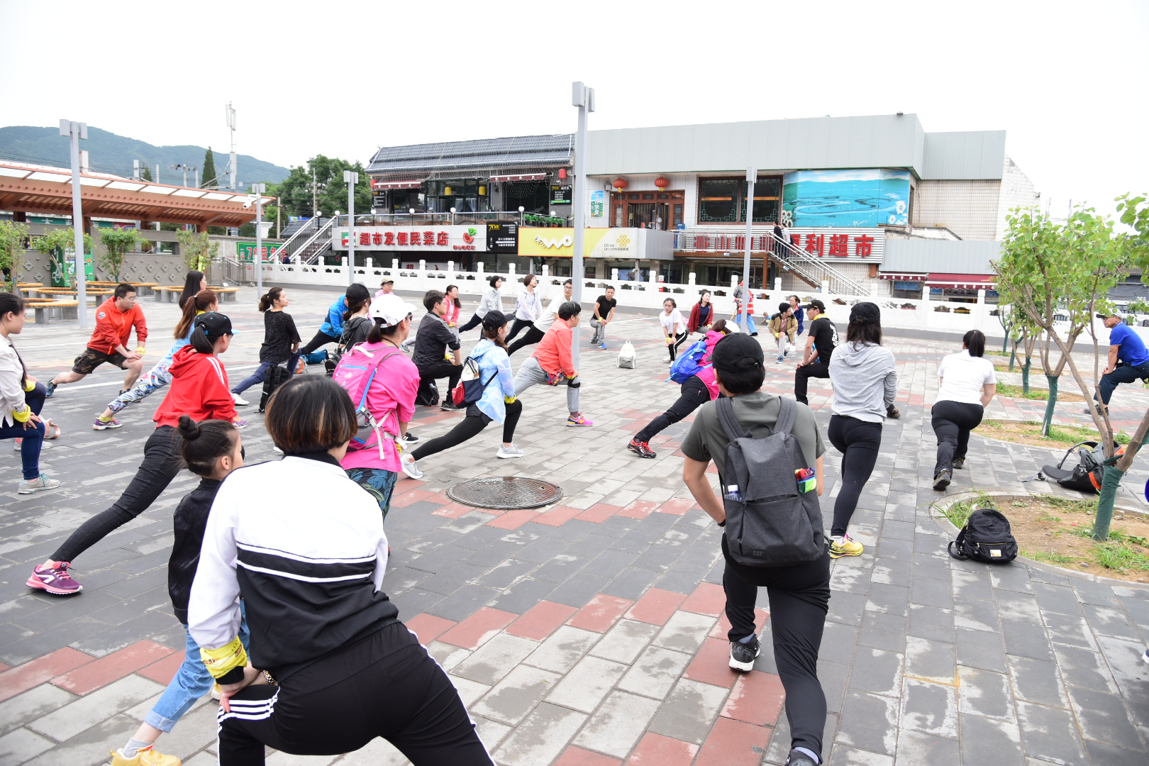 我们蛇神的位置位于北京西郊线香山站门口的小广场上,参与性质特别高,并且大家一起情不自禁的和带队老师一起喊起了热身口号。