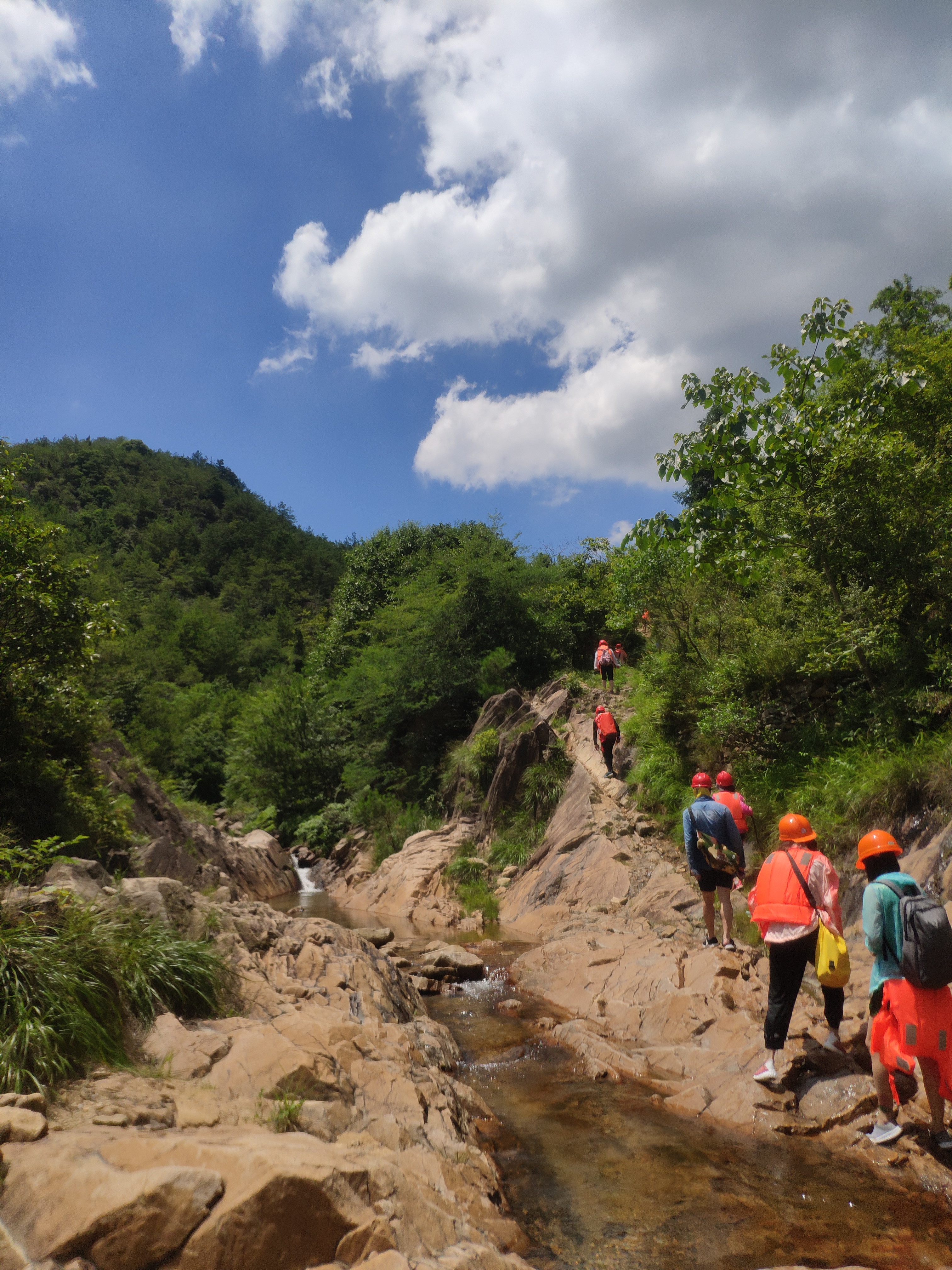 我们沿着溪水从下往上,沿途溪涧岩石较大需手脚并用。