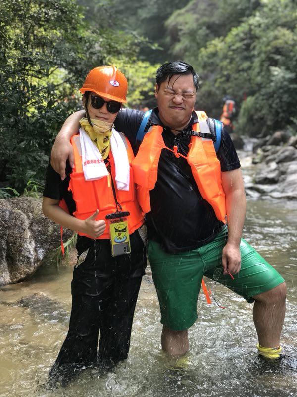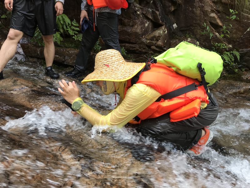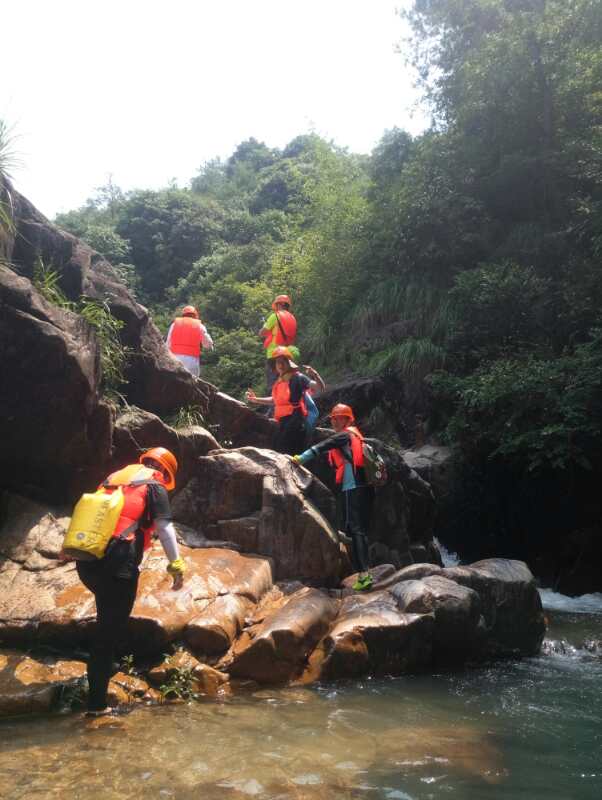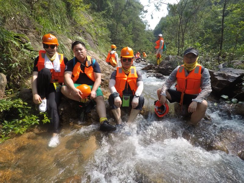对于溯溪而言,也许还不至于苦难的地步,但相比昨天下午的漂流,晚上天台县城的晚风明月,今天10公里暴晒的溯溪就十分有挑战了。50多人的大队伍浩浩荡荡,就出发了。
