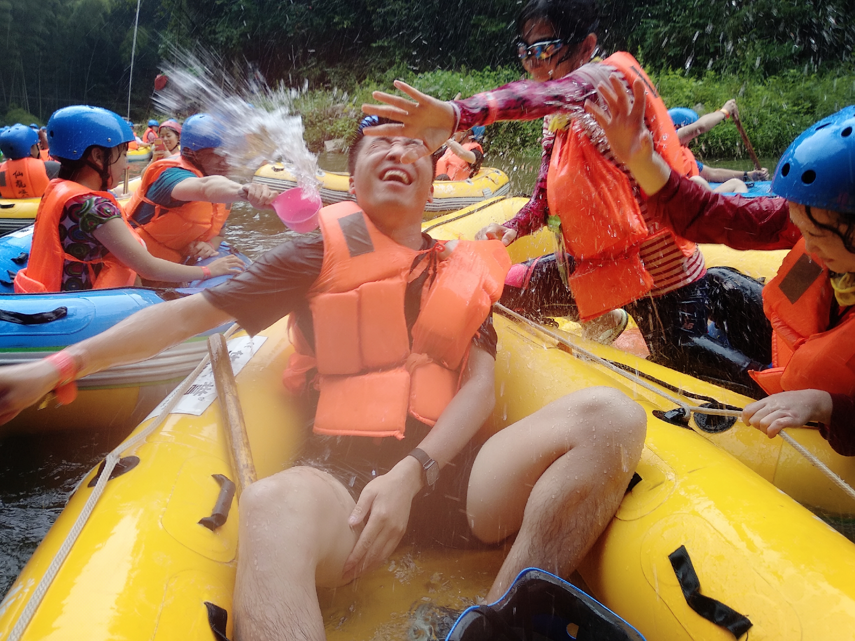 第二天早上,天有点灰蒙蒙,游侠们穿好救生衣,戴好安全帽,坐着景交车来到漂流起点,在茫茫一片皮划艇中Pick一艘,准备开启刺激的漂流之旅~~