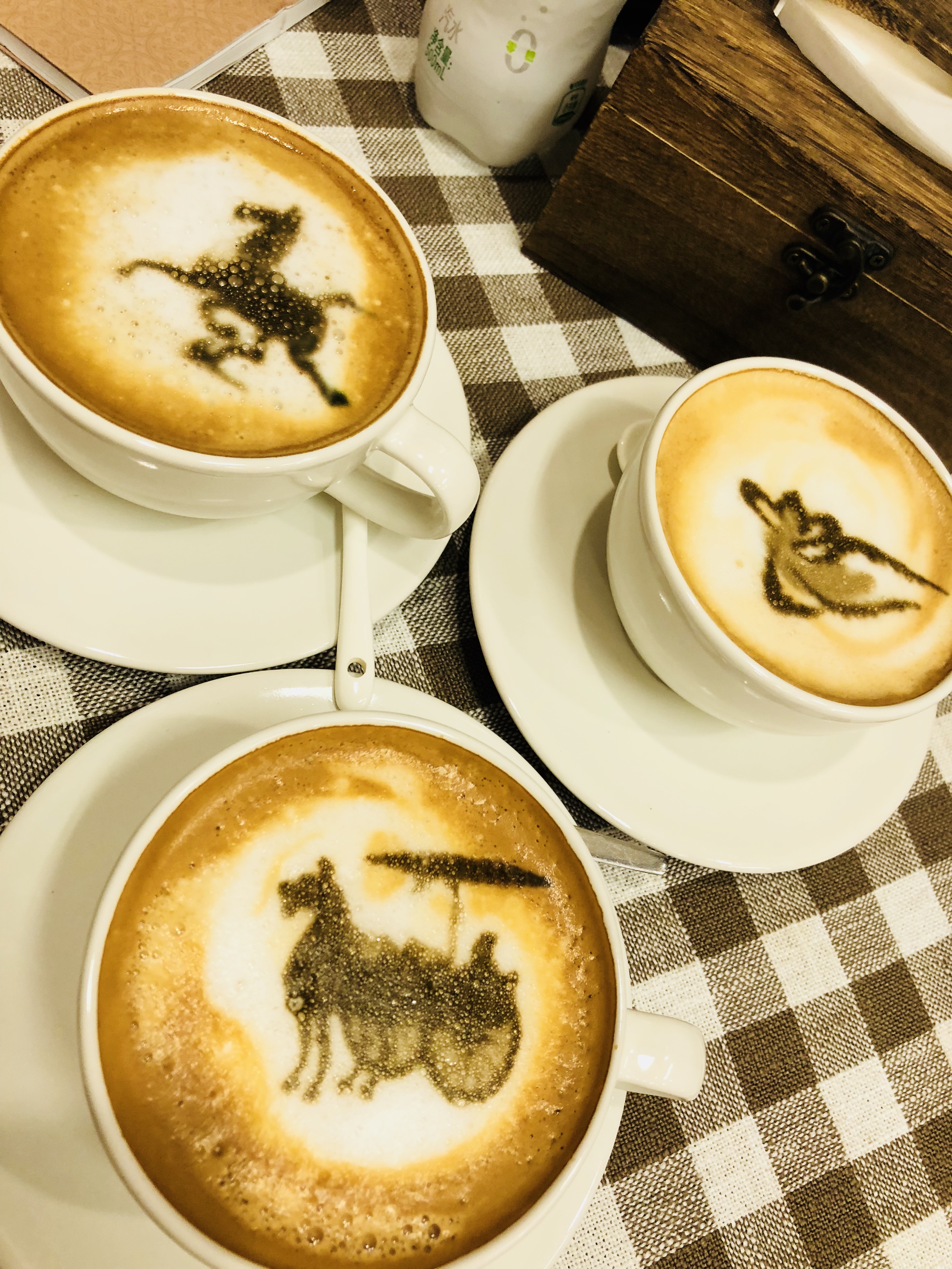 本次旅程的集合地点为西宁,但我们还是特意从宁波直飞兰州,就是为了一睹中国的旅游标识——铜奔马的风采。该展馆外的一间咖啡馆,拥有马踏飞燕、飞天、铜马车等拉花,作为咖啡控的小妞们必须应个景。