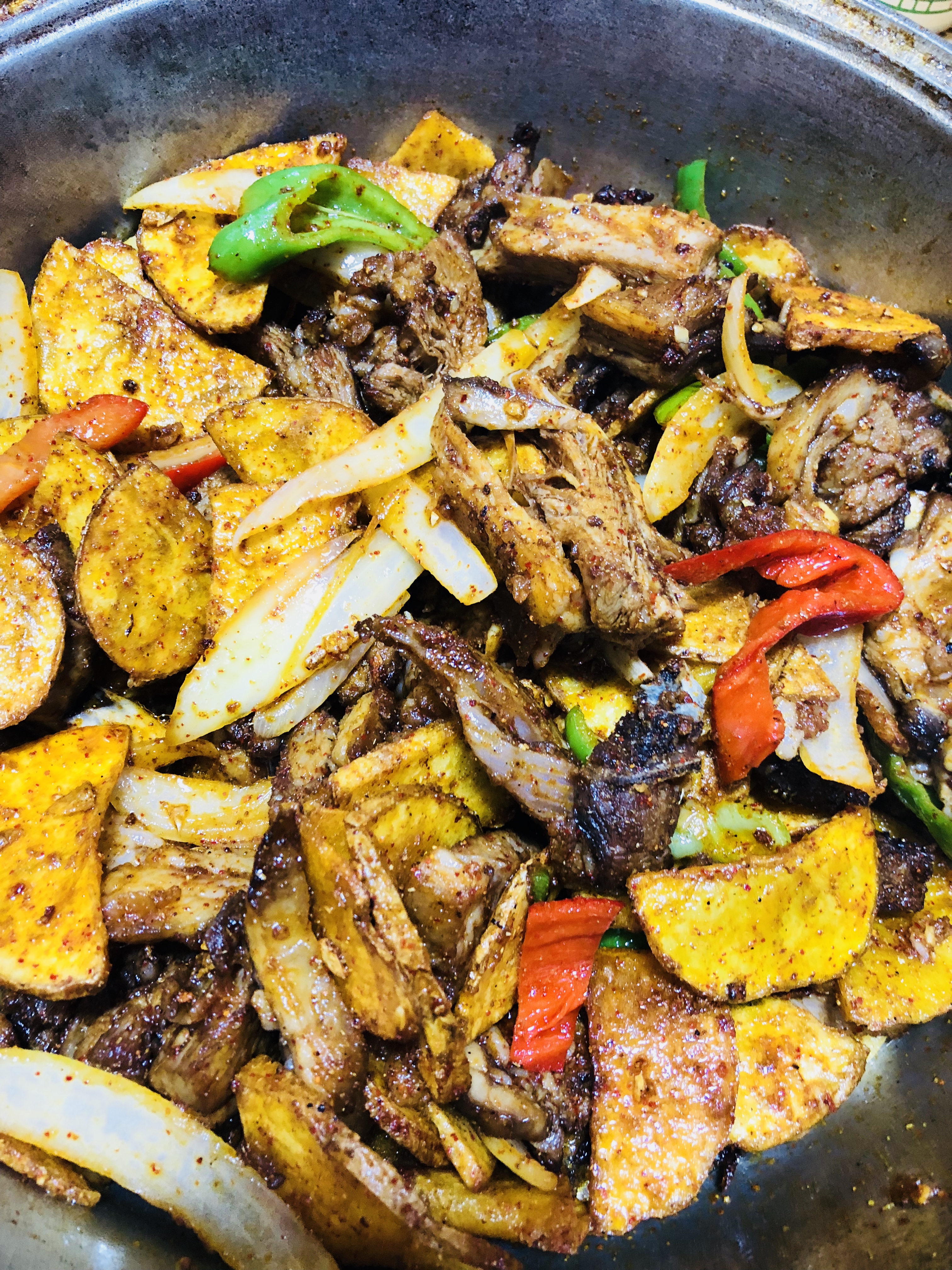 夜宿大柴旦,很难想像茫茫戈壁滩中还有这么一个灯火辉煌的城镇。这是风尘仆仆的人们一个完美的歇脚点。当天入住宾馆已将近10点,我们还是跟随着桌长去寻觅夜宵。下图的坑锅羊肉入口即化,其中的土豆出人意料是炸土豆片脆脆的口感,很惊艳。当地的羊肉串是现切现串,完全不用担心合成肉的问题。
