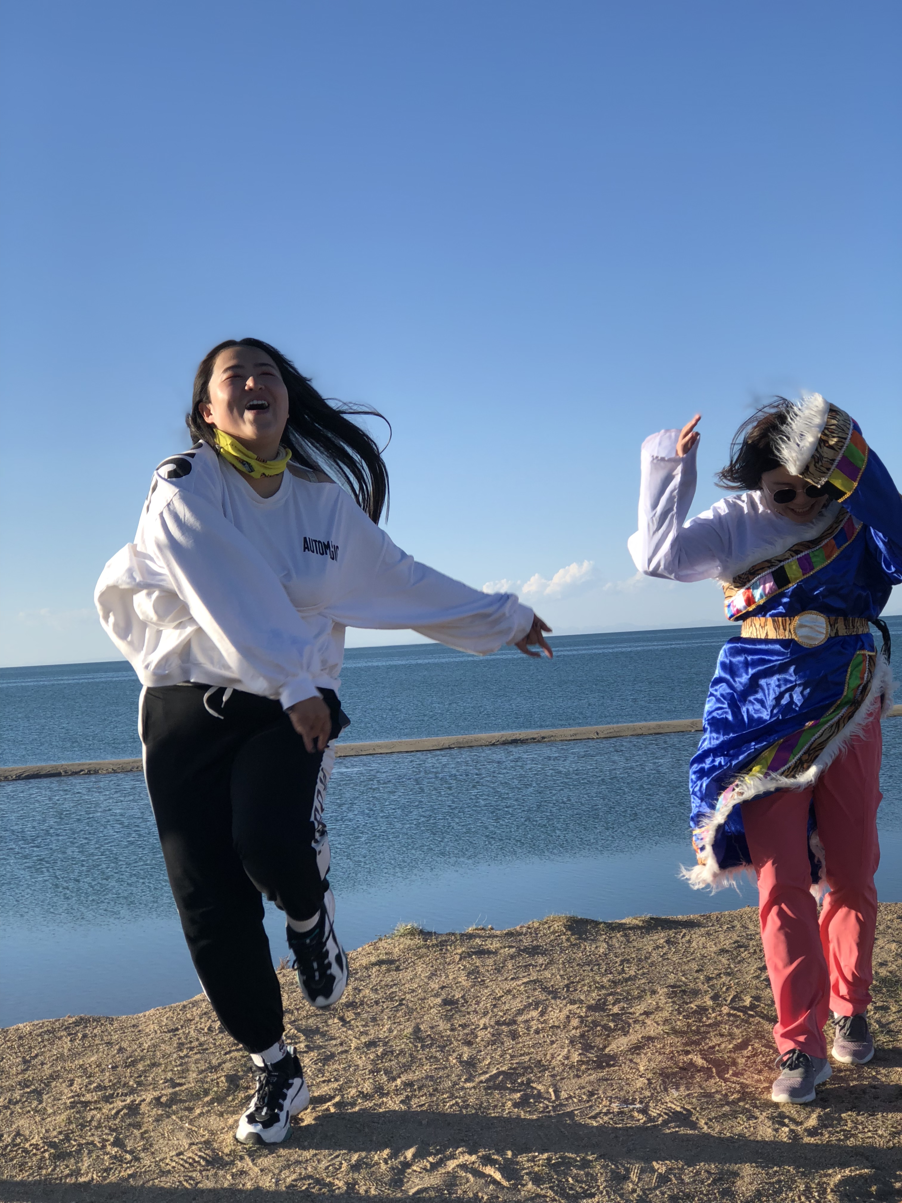 青海湖边的油菜花错峰栽种,虽没有78月份壮观的油菜花海,但9月份还是有部分油菜花田。感谢百百应大家要求给我们安排了在油菜花田拍照的时间,弥补了第一天门源花海的遗憾。感谢潇潇不顾形象陪我们在青海湖边上撒野。