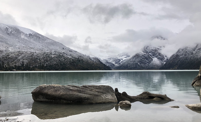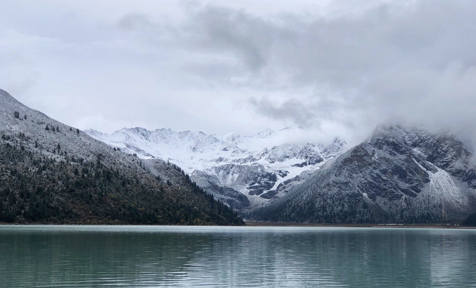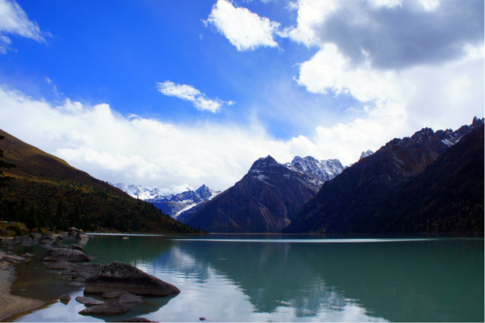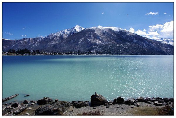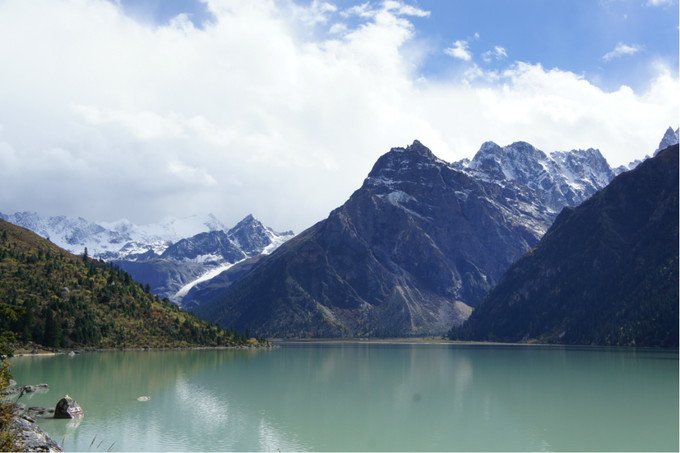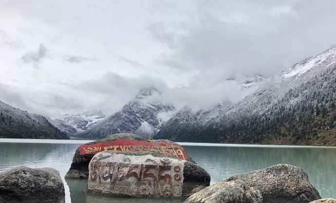 新路海藏语名爲玉龙拉措,“玉”是心,“龙”是倾,“拉 措”是神湖。相传藏族著名史诗《格萨尔王传》中英雄格萨尔之爱妃珠牡来到湖边,被秀丽的湖光山色和幽静的环境所吸引,徘徊湖边流连忘返,她那颗眷念美丽河 山的心犹沉海底。后人爲了纪念珠牡,取名爲玉龙拉措。新路海及周围生态原始、完整。晶莹的大型冰川从海拔五千米的粒雪盆直泻湖滨草原,极爲壮观。湖泊周围 由高原云杉、冷杉、柏树、杜鹃树和草甸环绕。蓝天白云、雪峰皑皑、冰川闪烁、青山融融、绿草茵茵、波光粼粼。湖岸珍离异兽出没,湖中野鸭成群,鱼儿游弋。