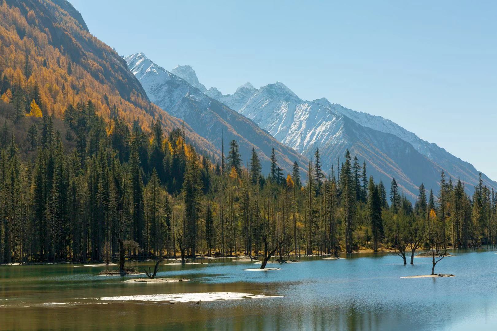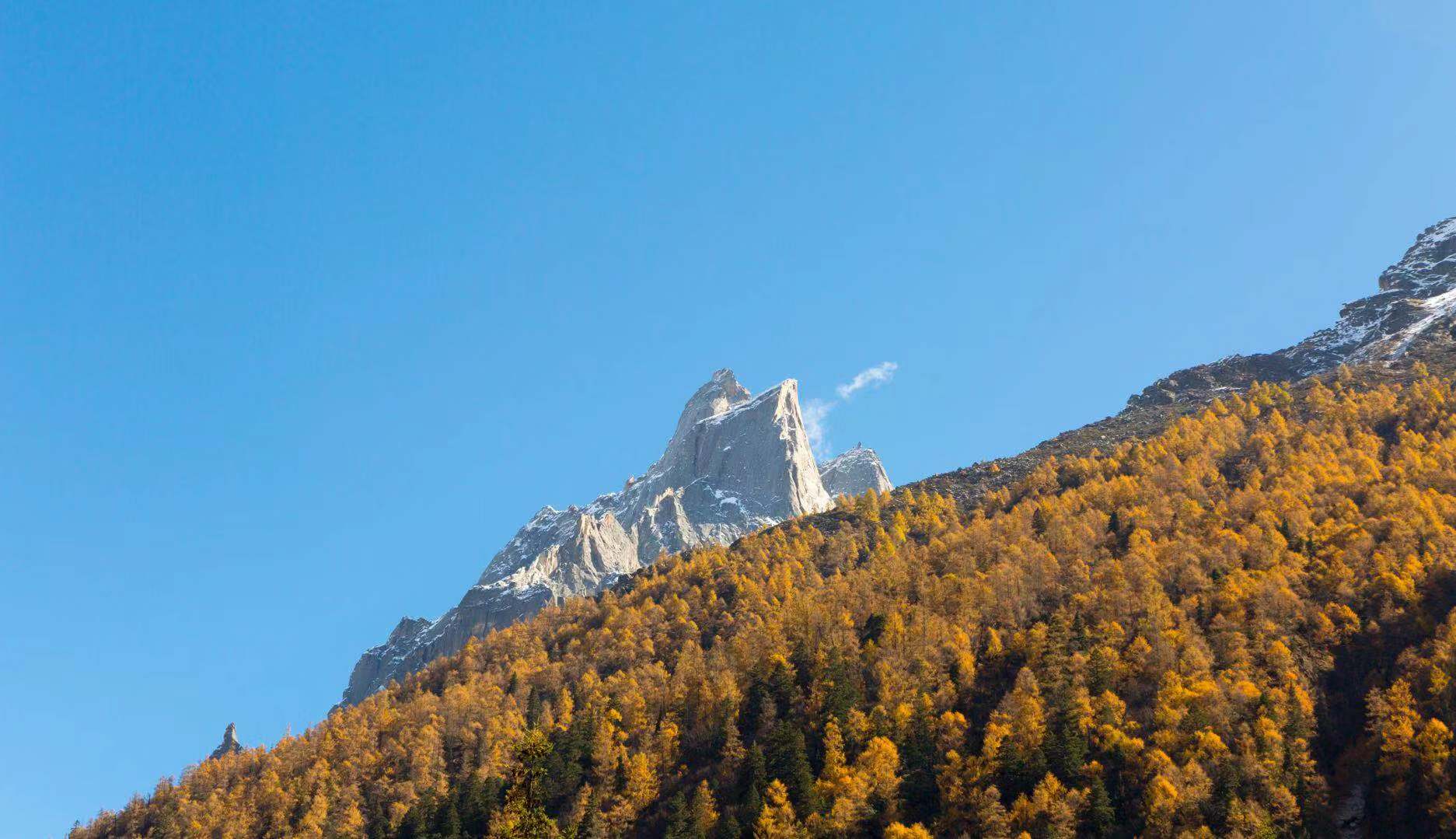 今天的行程以徒步游览为主,进入景区后景交车坐到喇嘛寺,然后徒步往沟的深处走,今天的折返终点是枯树滩,沿路眺望远处的幺妹峰,路过从山间一泻而下的毛毛虫瀑布,早秋的树叶虽然没有金黄一片,但满眼的山景还是让人忍不住深呼吸两口无比清新的空气