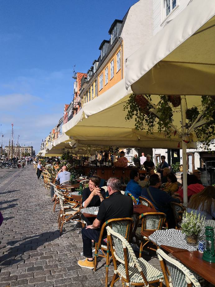 最后来到了著名的新港码头:活色生香的哥本哈根码头和运河景色:但见艳阳之下人声鼎沸,一派喧闹的繁华。运河两岸色彩缤纷的老房子、跨河的小桥、桥上的同心锁,白色的游船和清澈的河水,构成一幅欧洲版的《清明上河图》。岸边:人们悠闲的喝着啤酒、晒着太阳、听着音乐;河上:游艇密布、笑语喧哗;岸上是生意兴隆的啤酒街,河中是穿梭往来的各色游艇,在蓝天白云的映衬下构成了一幅童话般的立体画面,堪比人间天堂。