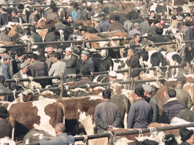 明天就是周日,在喀什,周日有个最盛大的赶集,这里叫巴扎(就是商贸、集市的意思),正儿八经的市场名字叫作喀什活畜交易市场,被简称为牛羊大巴扎,周日大巴扎,周日牛羊大巴扎。那我先解释下巴扎的意思吧。