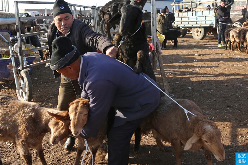 养殖户们每到这一日都要早早的起来收拾,赶着自家圈养牛羊去到交易市场,这个交易场所比较偏远,所以附近十里八乡的乡亲们,或开着三蹦子,或赶着毛驴车,或开着轻卡,脸上洋溢着难以掩饰的笑容往这个市场里走。