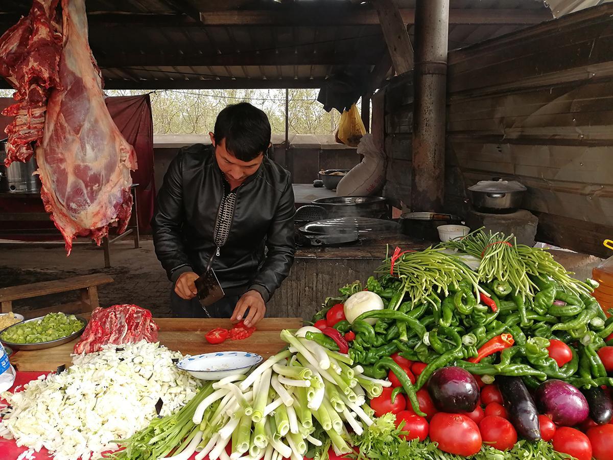 还有两点是比较沾光的,一是因为牲畜而出现的副产品,马鞭缰绳,饲料等,这些显得就是躺尸了。还有一个重要的就是美食,姑且这样形容吧,因为这里确实是原汁原味的牛羊肉,那个膻味,吃不惯的会立马晕掉。诺大一个市场,因为距离远的赶集会起早,开市了到这早饭还没吃,所有吃牛羊肉这个副产品也火起来了,甚至大有超过主角而成为网红的趋势。