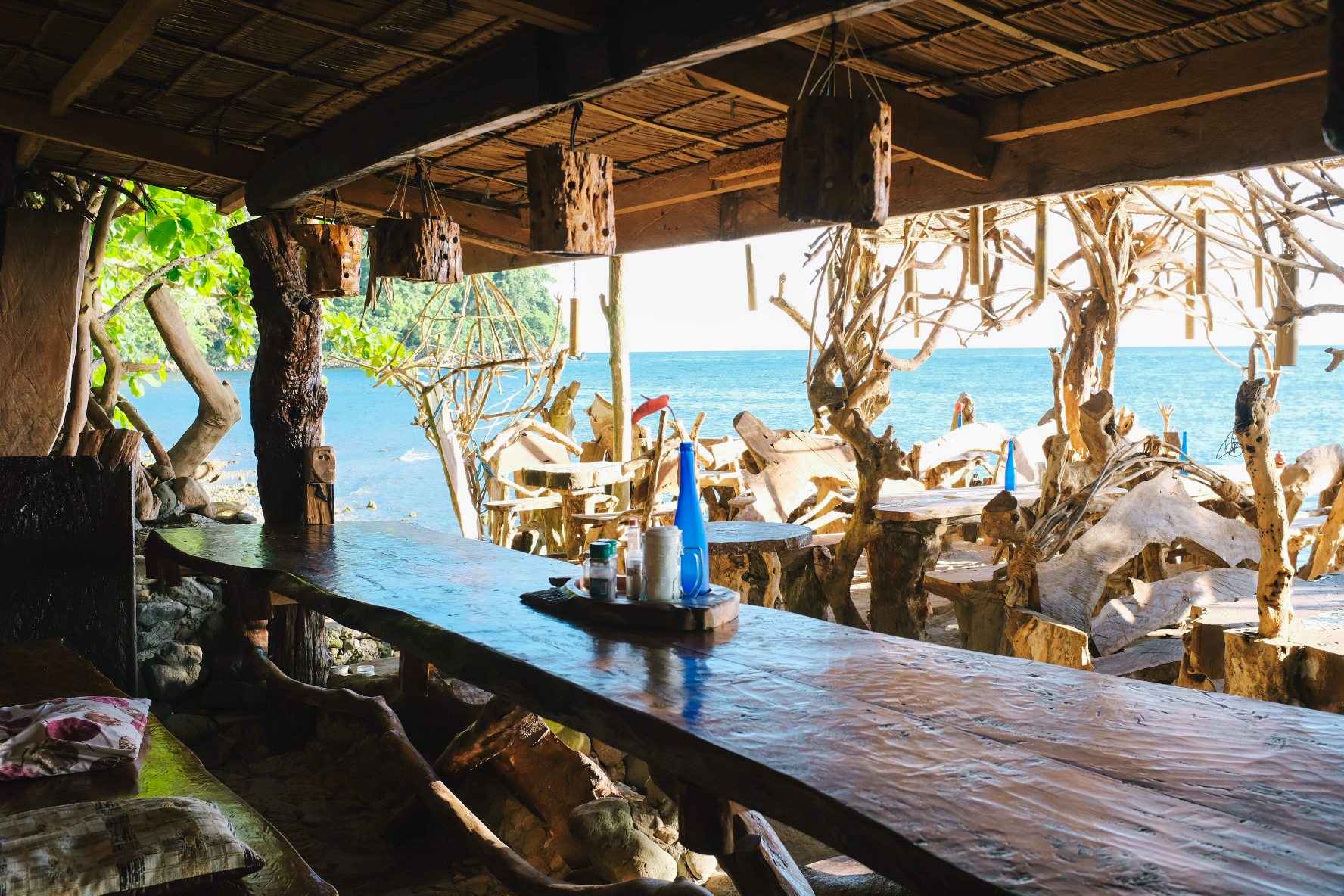 餐厅的桌椅都有浮木制成,它充满了细节和艺术感,在这享受和平与宁静。