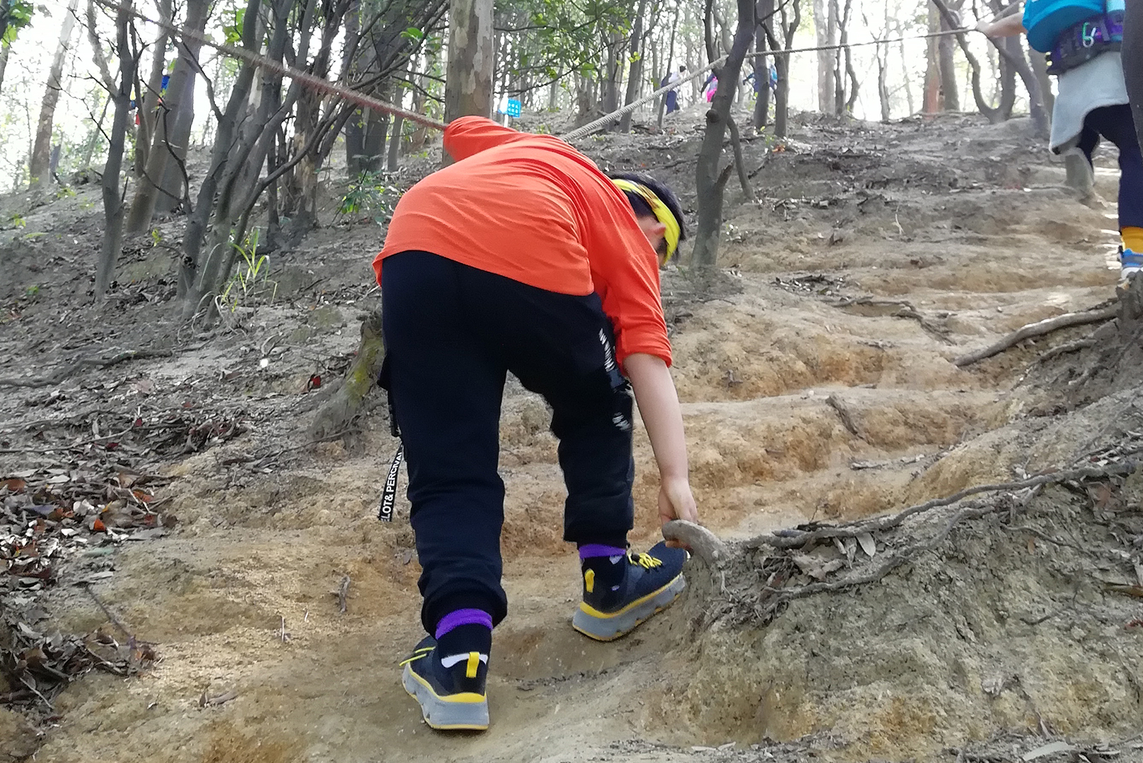 到了第一个山顶后,我们休息了一小会就开始下坡了,整一段路程我觉得难的点就是这一个下坡,有些游侠穿的鞋子不防滑,下山的时候要特别的小心,在这个过程中我们互相帮助,安全到达。
