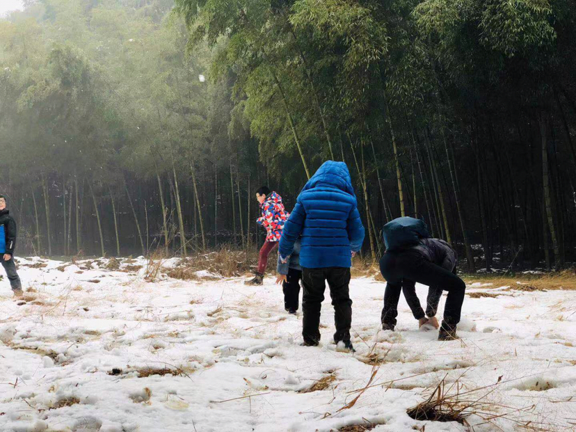 挖笋结束,大家都有了收获,要回去午饭啦,回去路上,白雪皑皑,小朋友们打起了雪仗,遭殃的是我们的耳东领队,哈哈