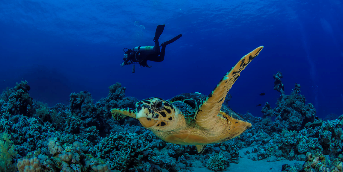 梦里海上涛声幽幽,在海底与海龟并肩遨游