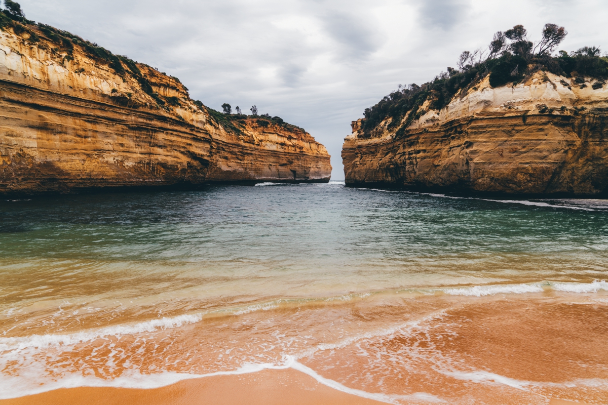 在墨尔本以西275公里处十二使徒岩已然成为 大洋路 乃至整个 澳大利亚 的地标。我们到时天空低沉,厚厚的云层似乎要接连到地面,这里的“妖风”像是个喜欢搞恶作剧的孩子,我在这里不止一次地看到帽子被吹飞的画面,穿裙子的姑娘们也个个紧扎着下摆预防玛丽莲·梦露式的尴尬。