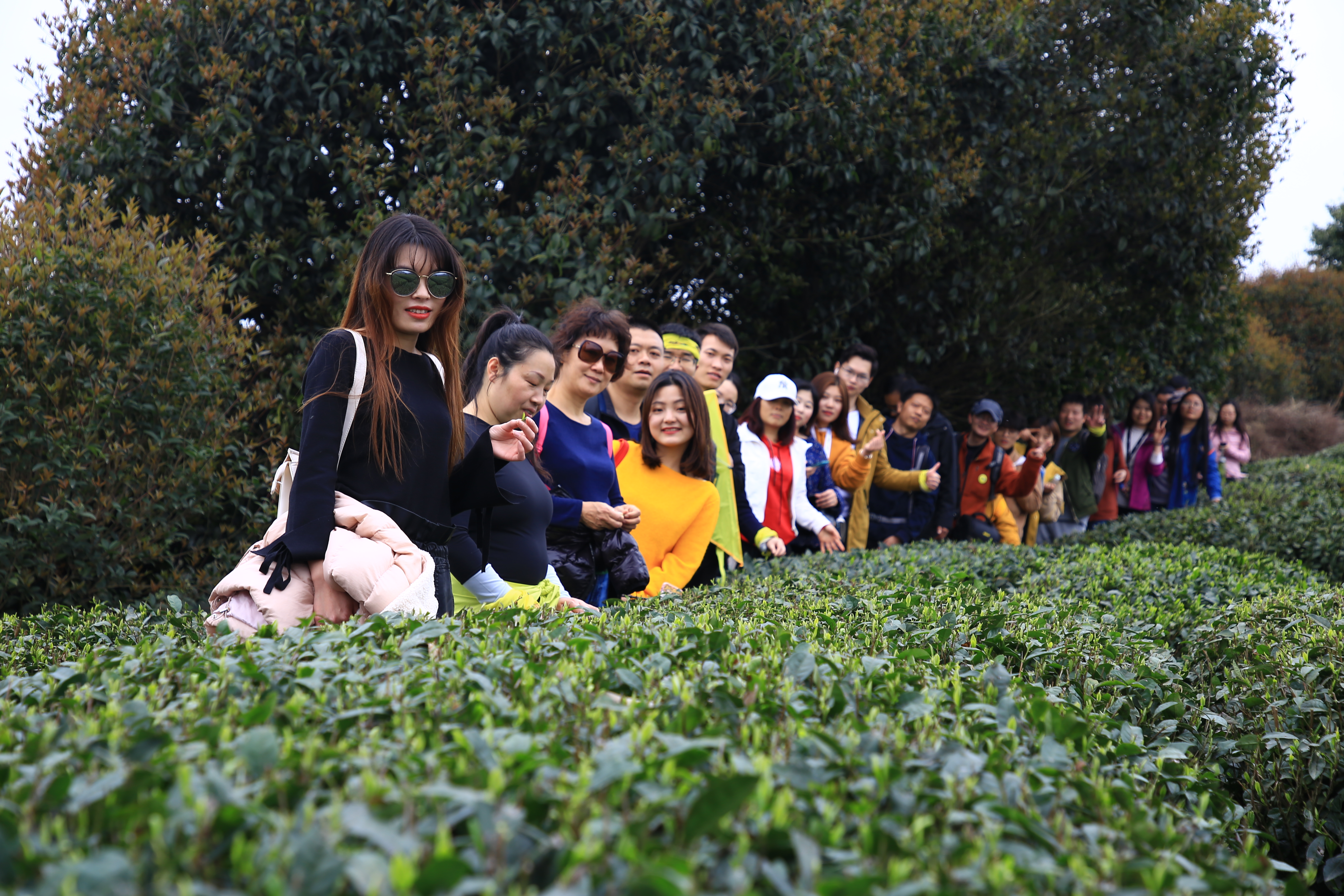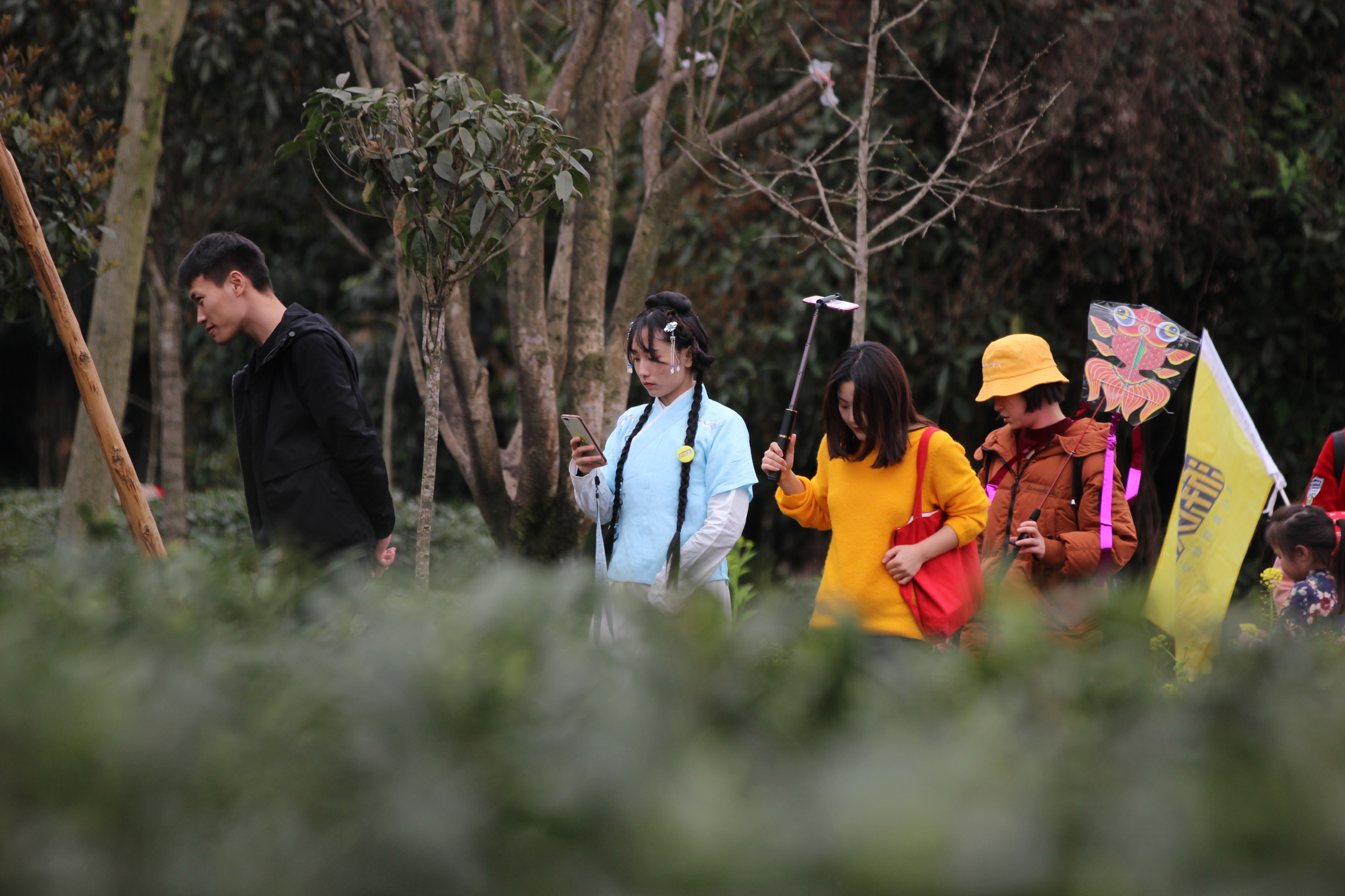 此时,游侠们三五成行,漫步在青青茶园中,尽情感受着“春的气息”。