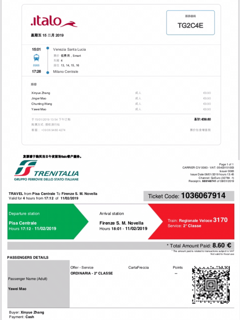 Italo和Ftrenitalia两个火车运营商的火车电子票