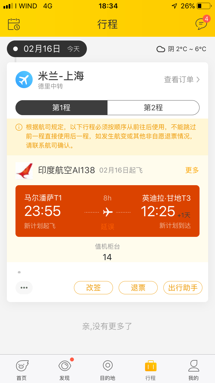 就在这时,第二班航班延误的信息也出来了!只有半小时也完全来不及!我和领导同事发了微信,报到来不了,并且已经做好滞留在印度的准备了!