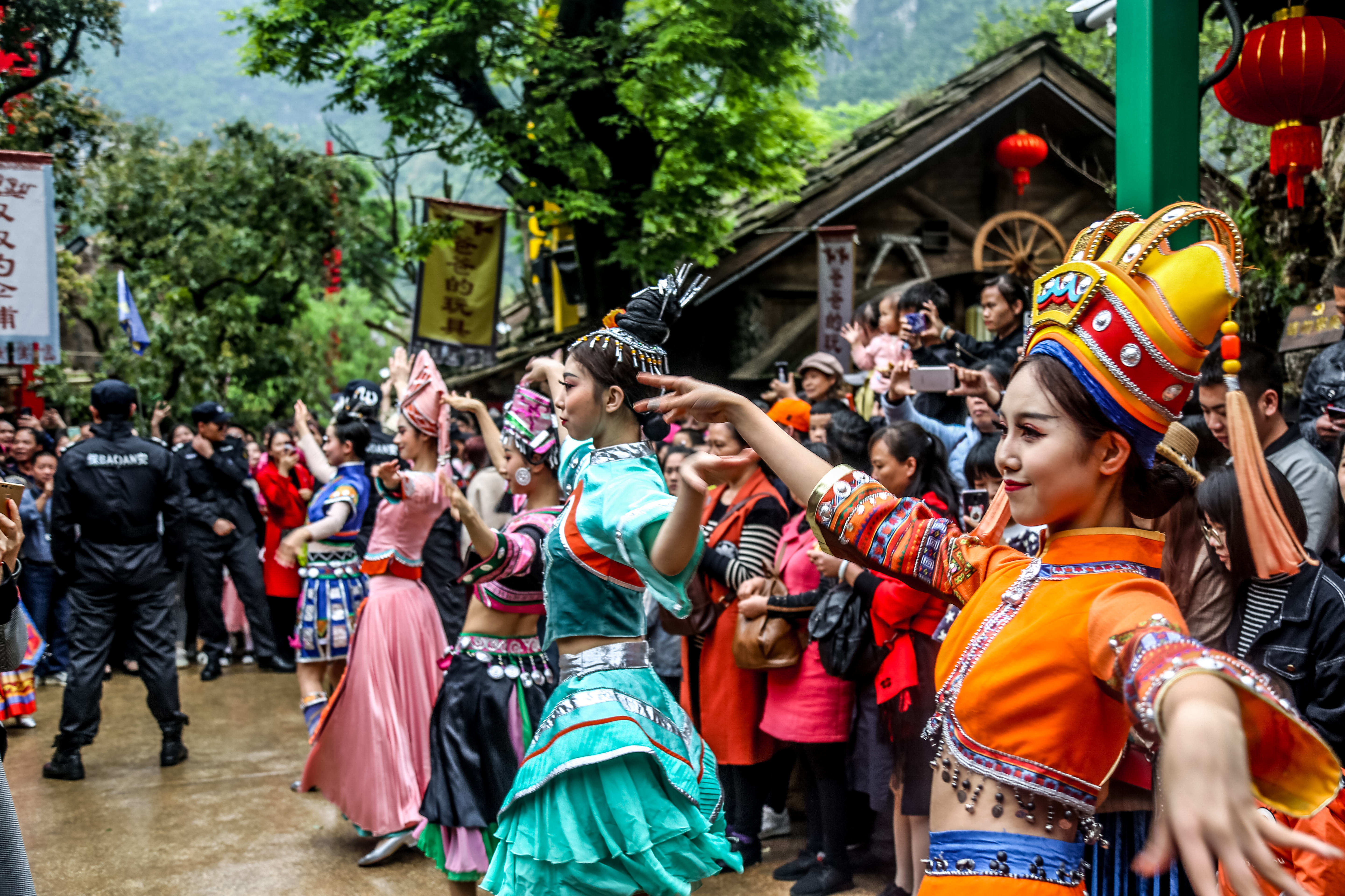 除了购买伴手礼和填饱肚子的作用,这里定时还又精彩的户外表演。我走到这里的时候,刚好就碰上了一场精彩的民族快闪秀。身着 广西 各少数民族服装的阿妹们载歌载舞,而且还是有小剧情的快闪秀。