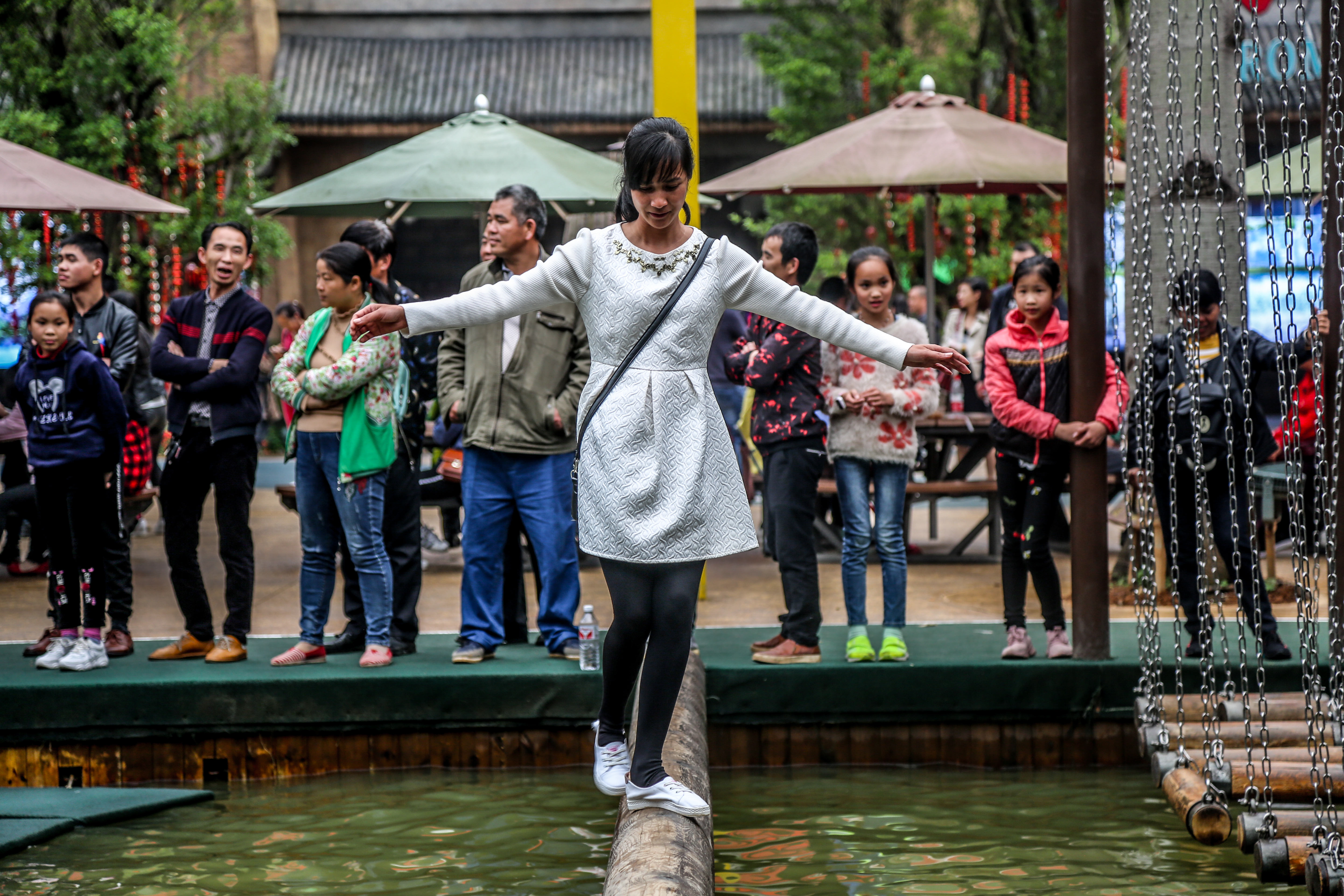 刚看过水上飞人的表演,如果感觉不过瘾的话,可以来到水上一游乐区,自己感受一下当“飞人”的感觉,来试一下,到底会是“轻功水上漂”,还是会成为“落汤鸡”。如果感到难度比较大的话,还可以玩一玩独木桥等游乐设施。