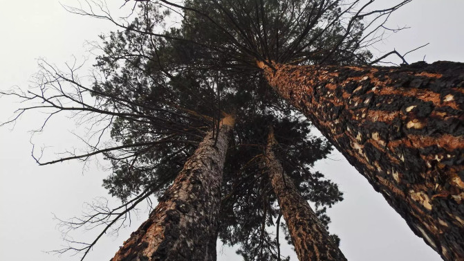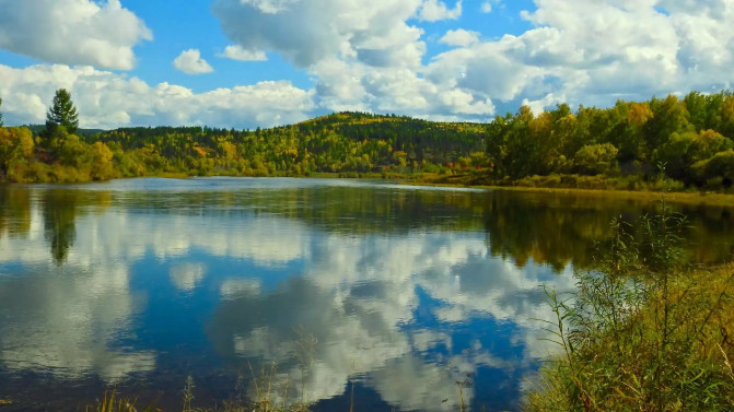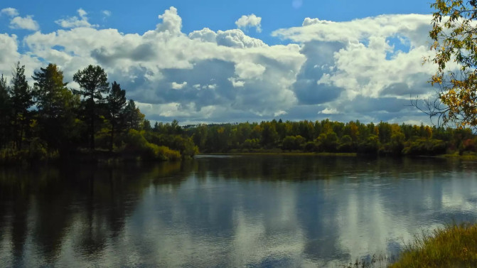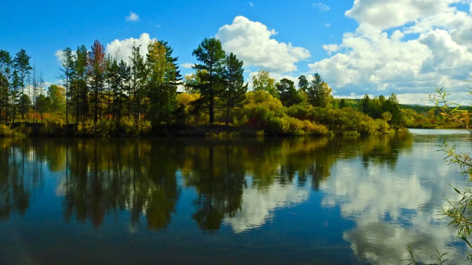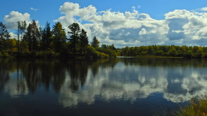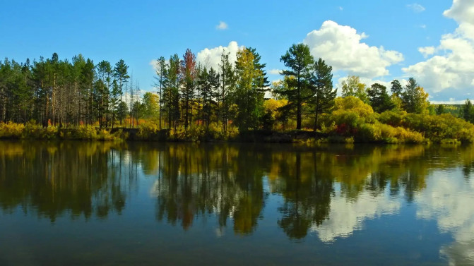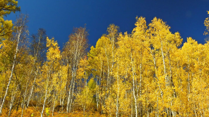 这是我们第一次如此真实、近距离地与金色的白桦树面对面“交流”。至于眼前的风景,我觉得用任何语言来形容都显得过于苍白,她很壮阔,有着大海般的气势,却又异常平静。湖水清澈得像婴儿的双眸,近处是青色,远处是乌黑色,震人心魄。