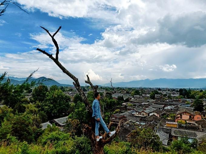 在 束河 有一个小众的拍摄地点,在那里可以拍摄整个 束河 的全貌。在九鼎龙潭旁边的山上,上山的路口在九鼎龙潭路边有纳西老奶奶摆摊卖泡在 水里 的水果的旁边,背后还有一间低矮的小房子,路很陡然后超级不起眼,所以别走过了哦,不清楚的朋友们可以问卖东西的纳西老奶奶要去背后的山上从哪里往上走。