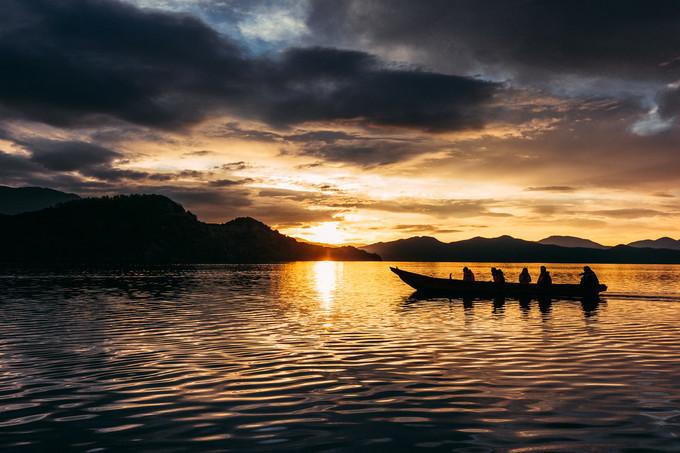 日落下的 泸沽湖 ,是我见过最诗情画意的瞬间。