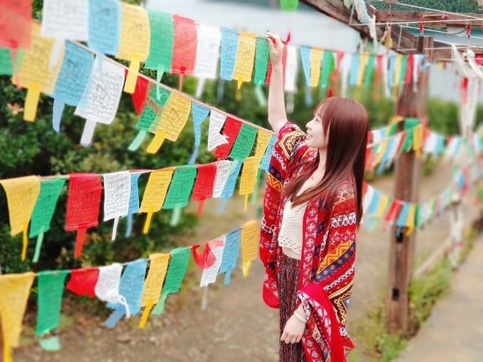 五彩的经幡是美好的象征。 从山上下来,便看到许多彩色的猪槽船停在湖边,整个画面变得十分唯美。