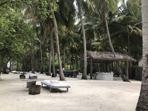上了岛直接入住沙屋,小黑领着我们先坐小沙滩车逛了逛,顺便去活动中心拿了两套浮潜装备,给我们介绍了一下岛上设施。