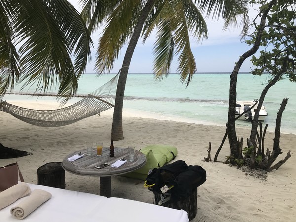 芙花芬优势就是人少,没小孩,四天全是水屋,适合蜜月,而且蜜月套餐还赠送双人水底spa(这个挺值钱的,后来我们在玛丽富士做spa, 合人民币大概3000多了)。 缺点就是快艇上岛,没办法体验沙屋。