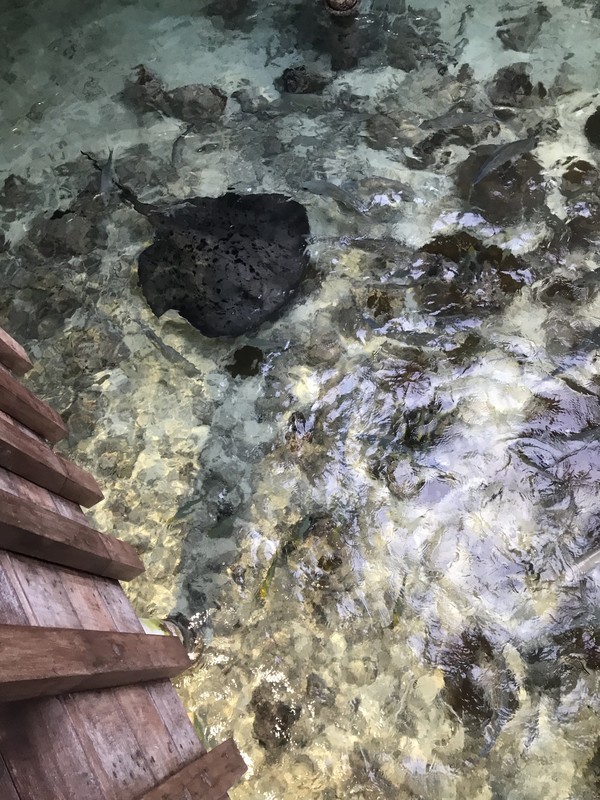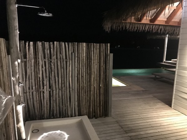 今天我们该搬到水屋去了,因为参加BBQ,所以我们没有自己搬,在参加活动之前和前台确认了一下,我们把行李收拾好放到沙屋门口,工作人员中午帮我们搬到我们要入住的水屋。所以吃完BBQ就直接送我们到水屋去了。