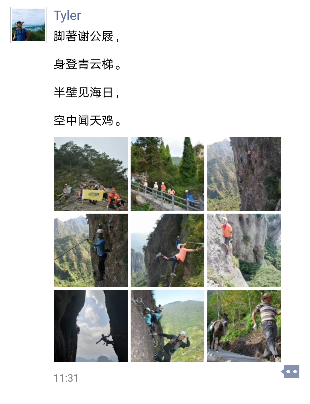 江湖规矩不能破,此处必须露齿笑大合照一张。 每一次旅行都会有一段感受,我们为什么会如此热爱旅行,为什么会来到了这悬崖之上,体验这份刺激呢?来来来,看看以下就知分晓