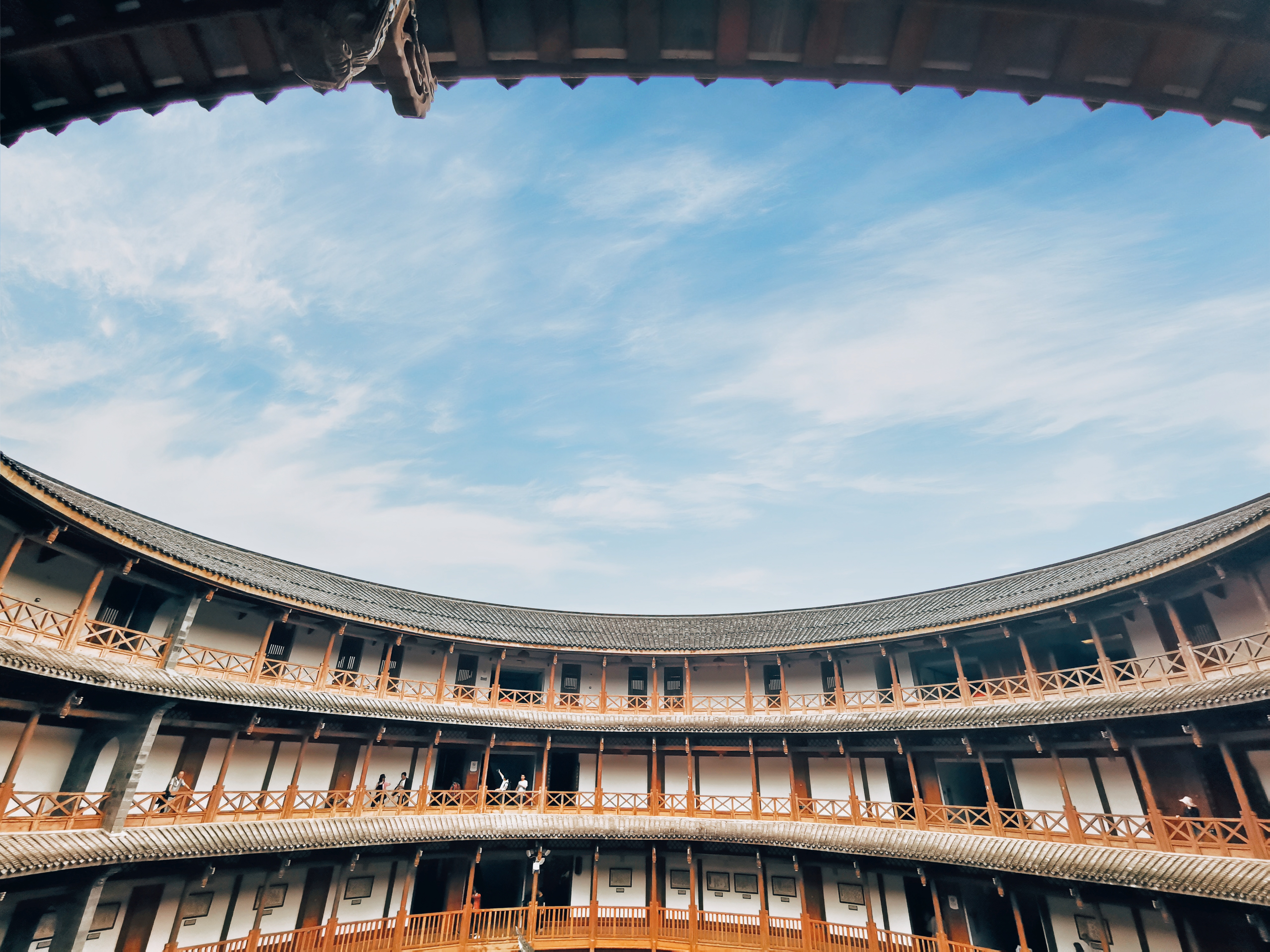 据说客家人客居他乡,心理上没有安全感。土楼就是一种家族团聚,还能防御敌人的建筑。同一个宗族的人在一幢土楼里形成一个独立的社会,共同存亡。所以御外凝内大概是土楼最恰当的归纳。