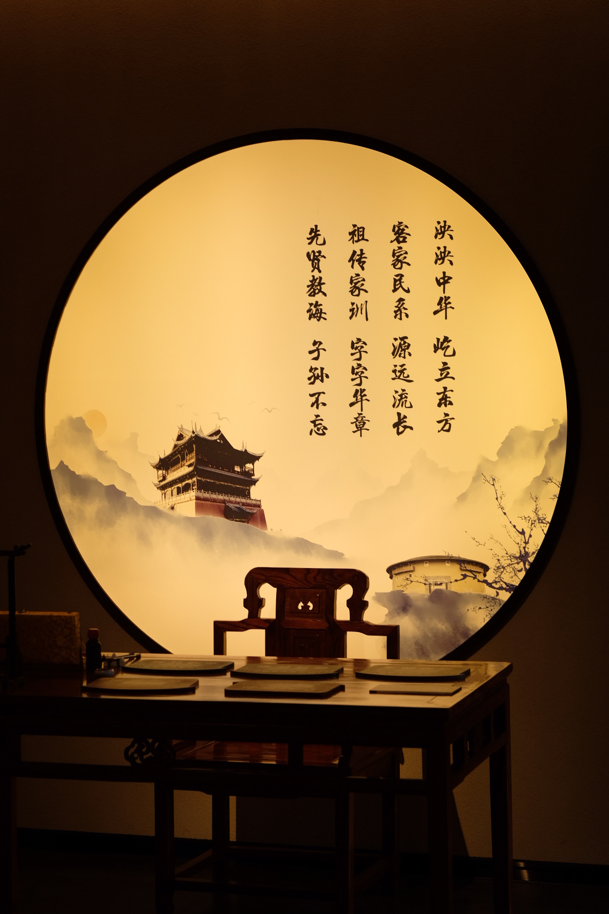 展厅内环绕了六扇“家门”,展示了范仲淹、曾国藩等历史名人的家族名言。管内收藏了客家人的族谱。诗文等。