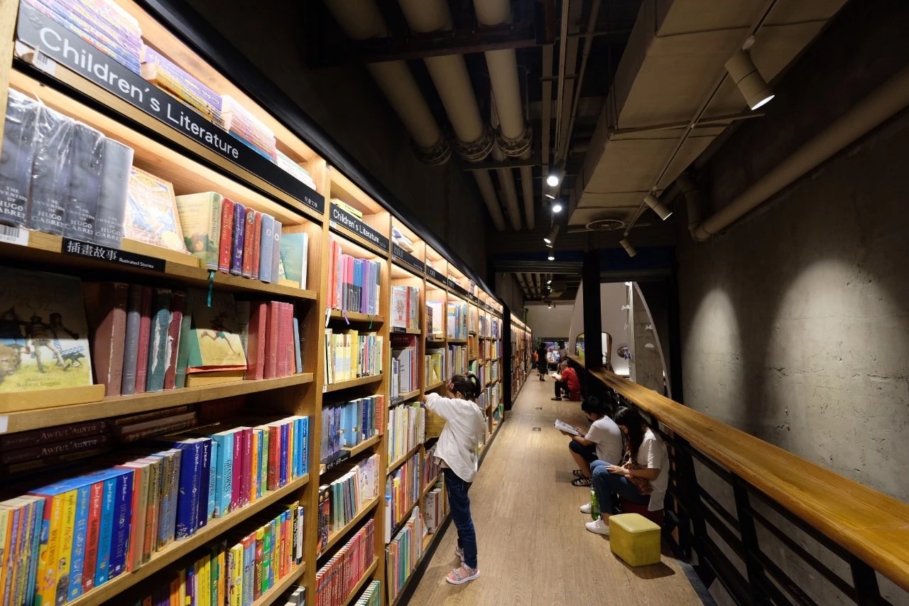 分布零散的灯光照在书架上,隔着屏幕也能感受到它的典朴静雅。