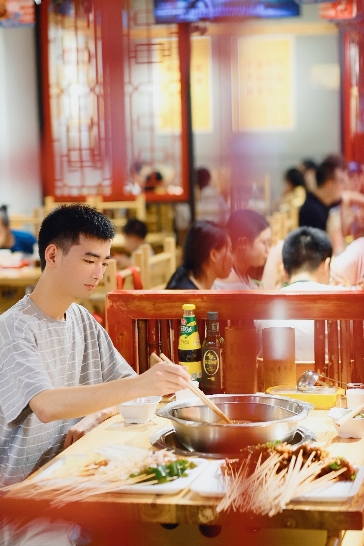食客热火朝天地烫着火锅,觥筹交错的闲暇,透过窗栏窥见的,是成都的夜色灯火。