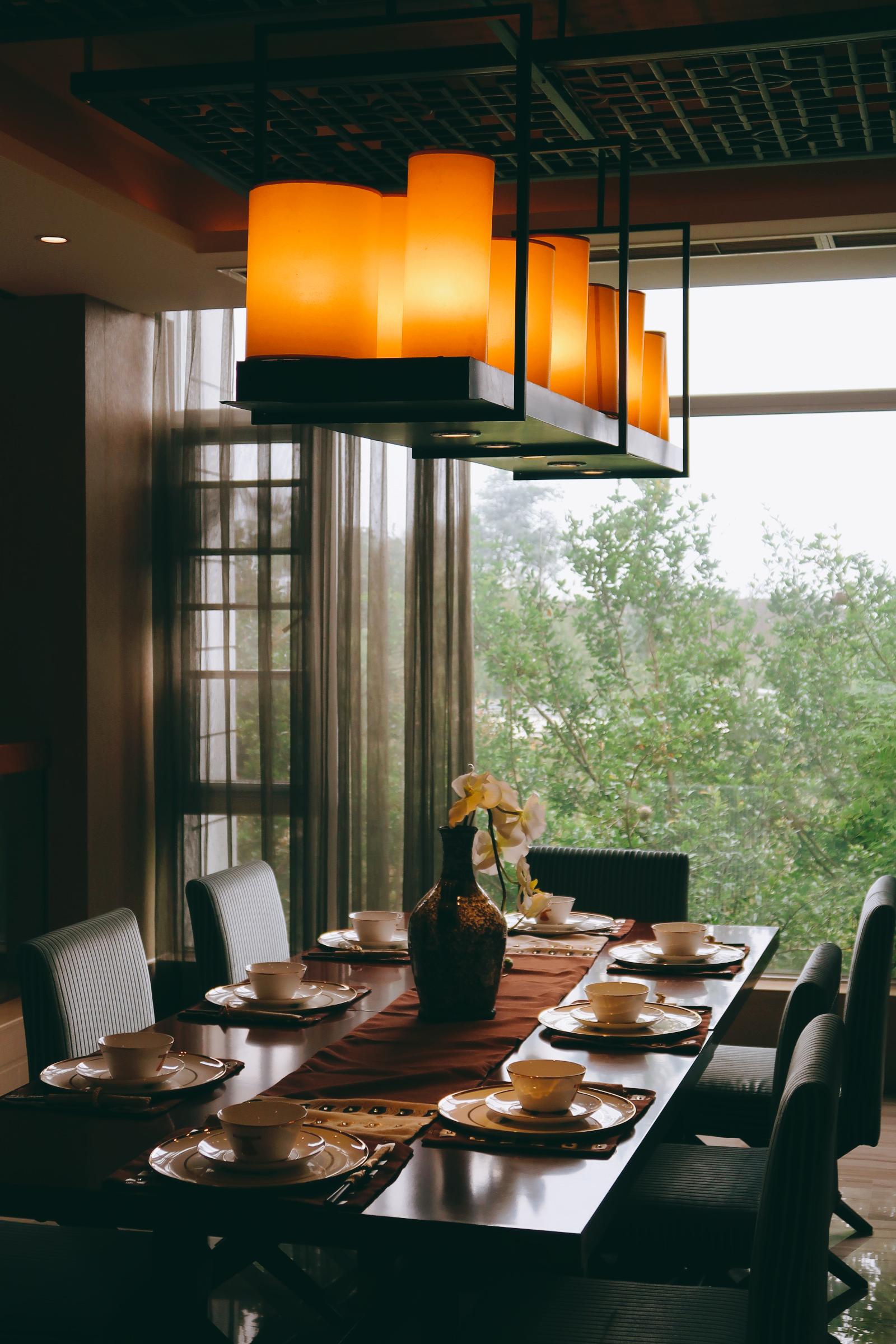 整个别墅的装修比较偏复古,房间布置简洁舒服,餐具也很非常喜欢,屋子一侧大大的落地窗可以一览外面的景色。