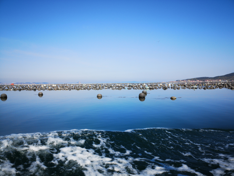 哈仙岛的美景怎么能少得了大海之上。海上有无尽的圆球状浮漂,这些都是养殖扇贝和生蚝的。我们餐桌上吃得鲜美生蚝和扇贝,基本上是从这里发出,来到千家万户的餐桌上。蓝天碧海就应该是这个样子,风景无限。要注意防晒,在渔船上不做防晒,那就等着让海水吹黑吧。