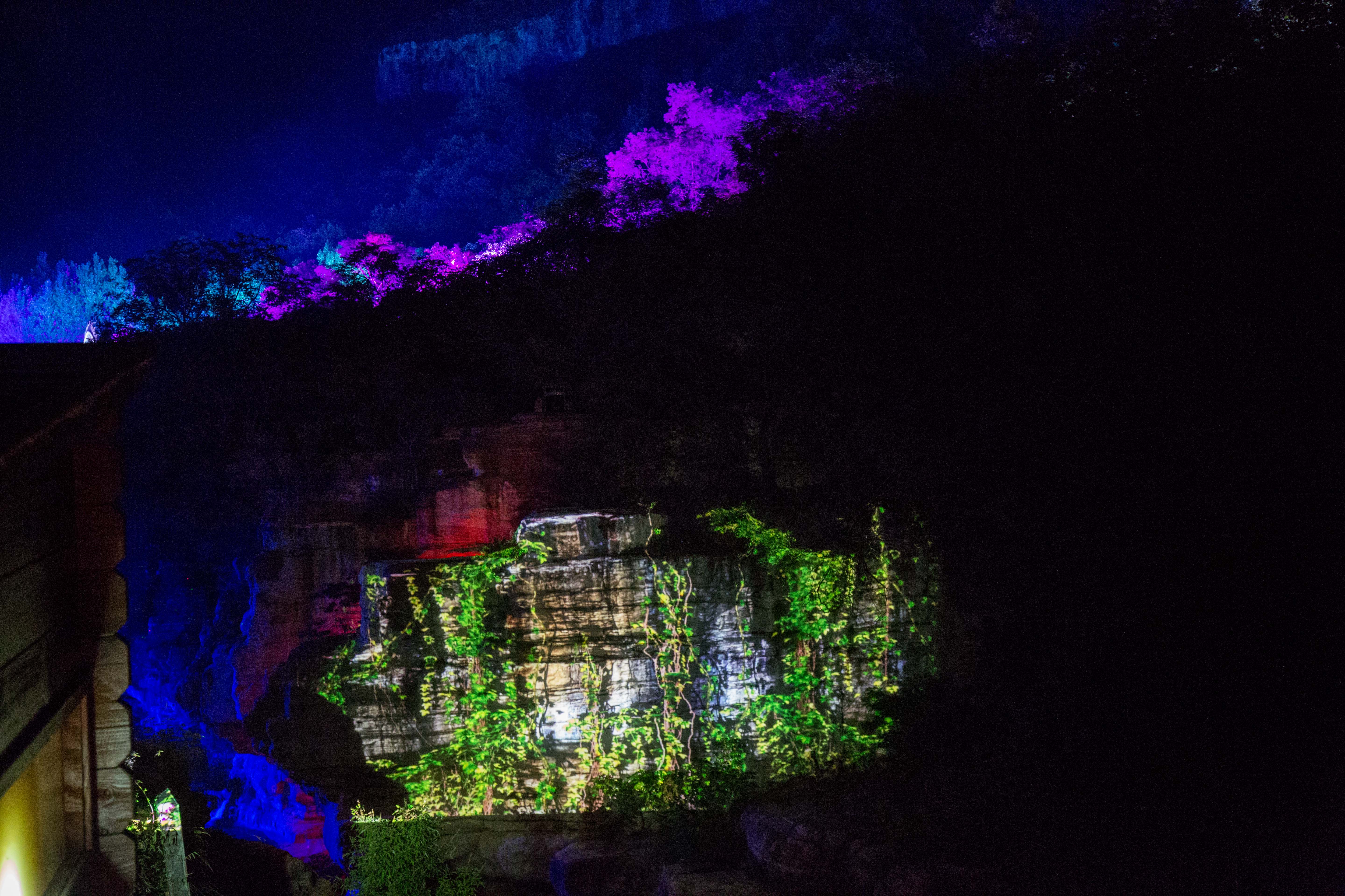 灯光影秀在山林峡谷中交相辉映,使你一进入云溪谷,就感觉山野丛林间有无数只萤火虫在飞舞,美轮美奂宛如仙境。
