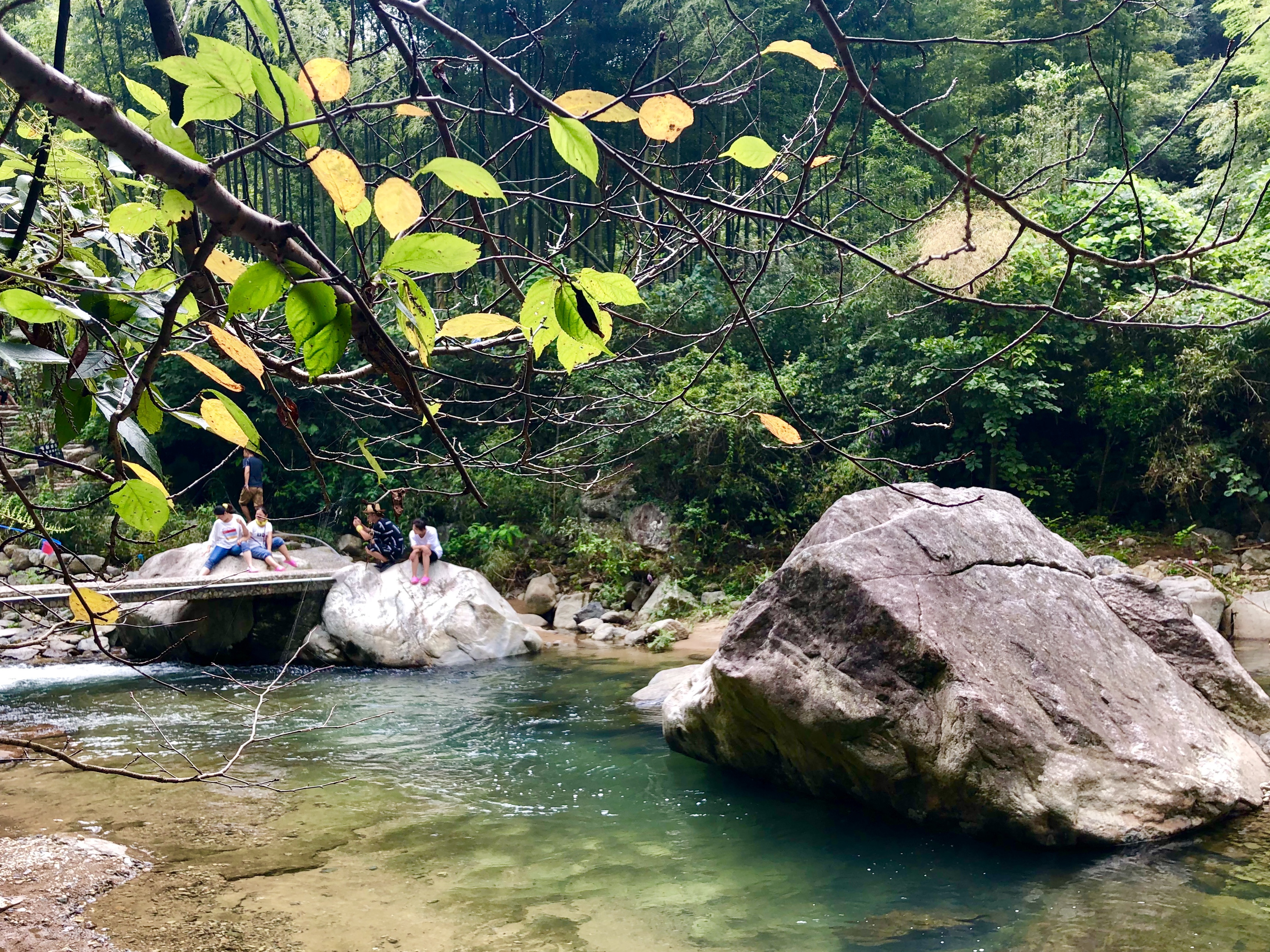 我们拿着捞鱼的网兜一路溯溪戏水,水底圆润的石头压在脚底下有点痒痒的,仿佛自带按摩功能。