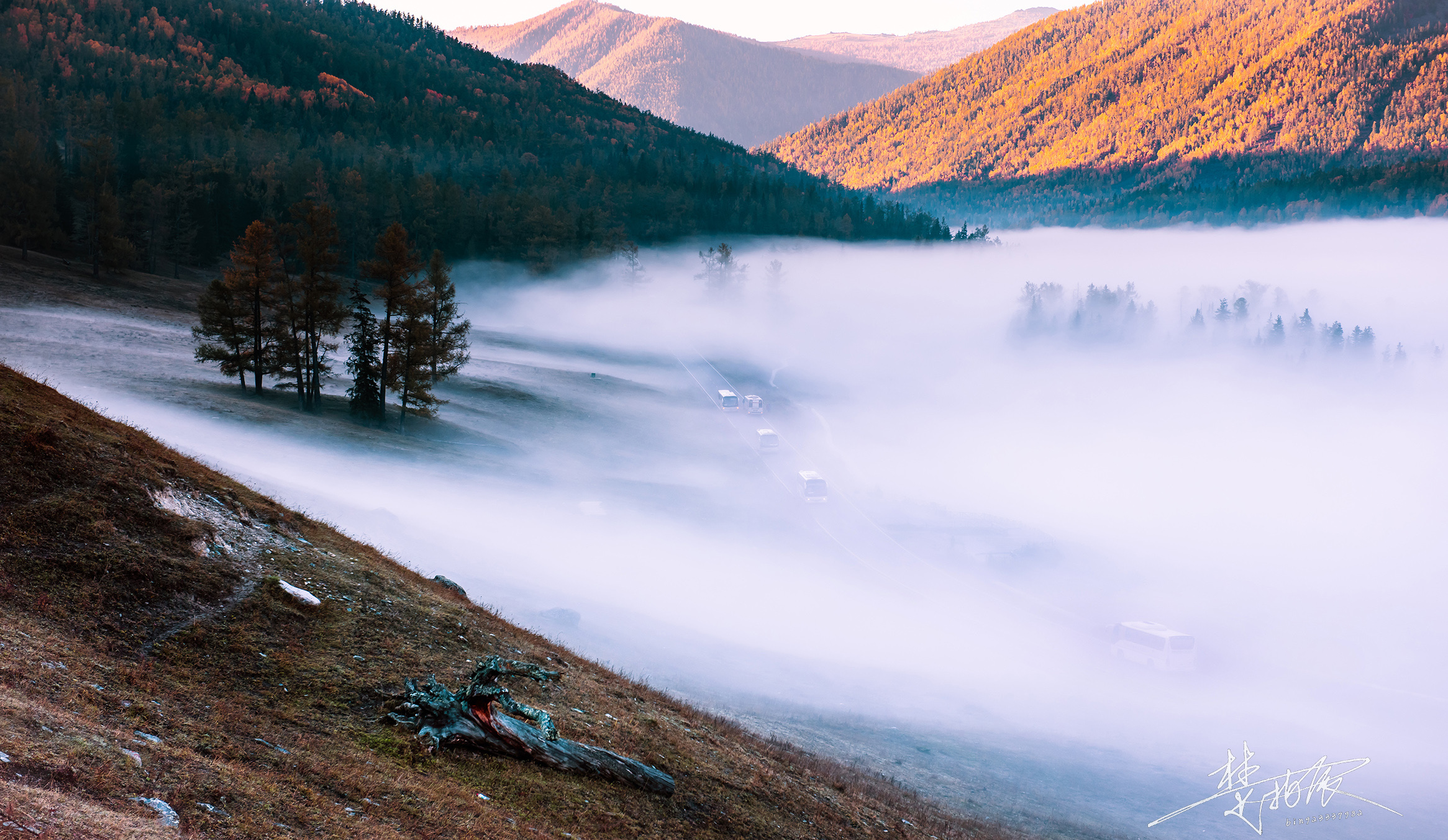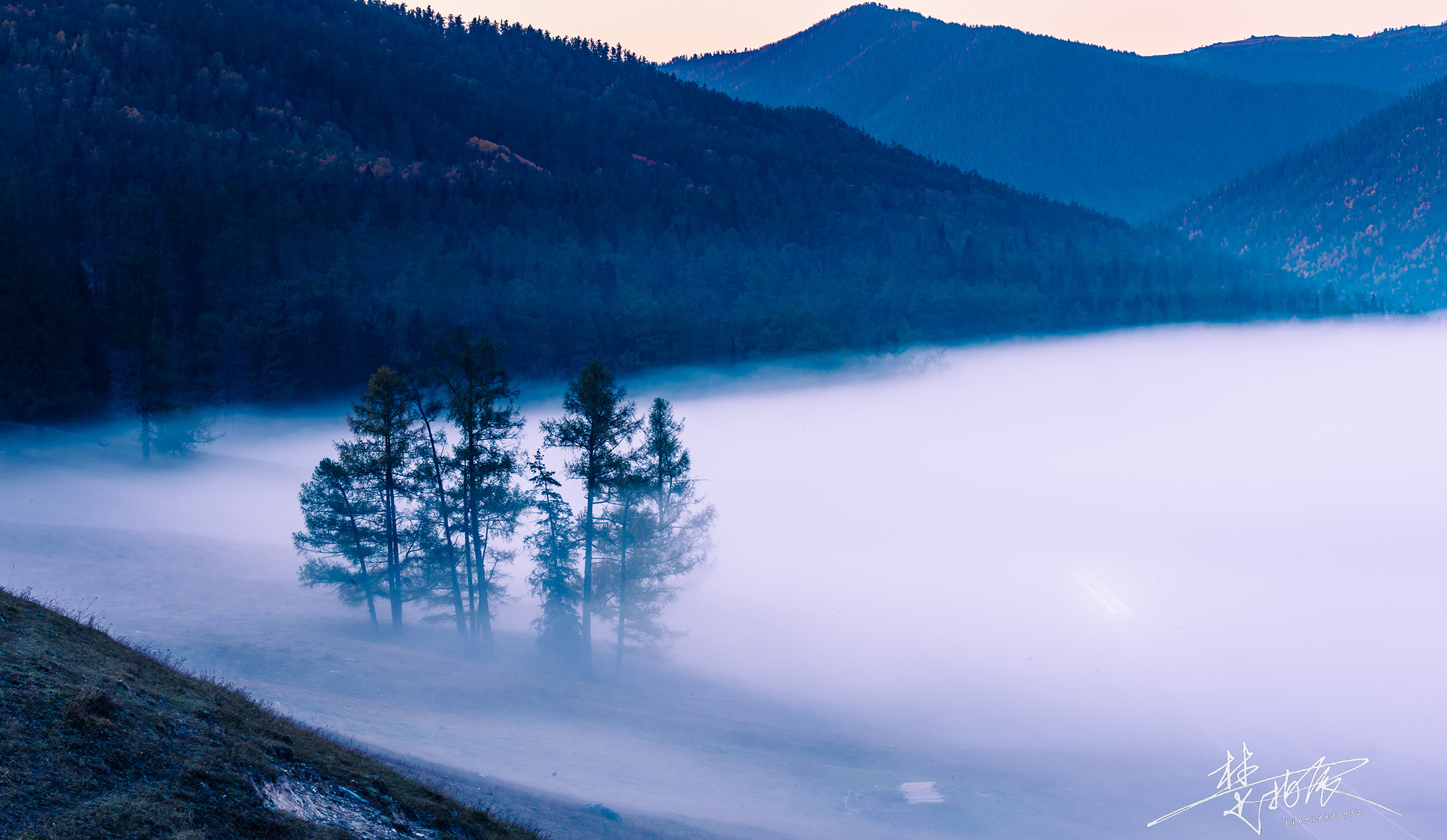 这里山势较高,坐拥阿尔泰山脉怀抱之中,无论是日出还是日落都不是刚刚好的时间,太阳升起来的时候已经是天很亮,太阳很大了,所以来这里就是看朝霞,日出前的蓝调。