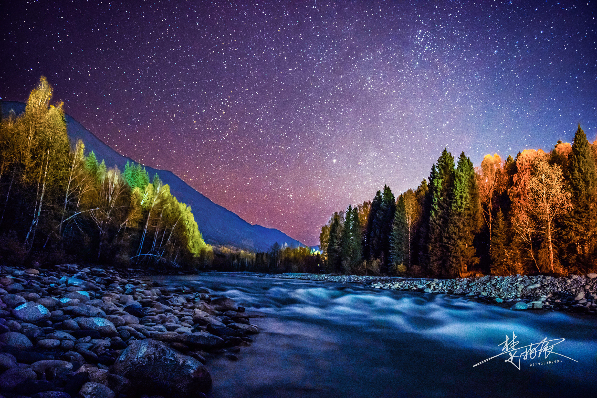 吃饱喝足,两个老姑娘洗洗睡了,三个老男孩儿继续沿着禾木河拍星空去了。