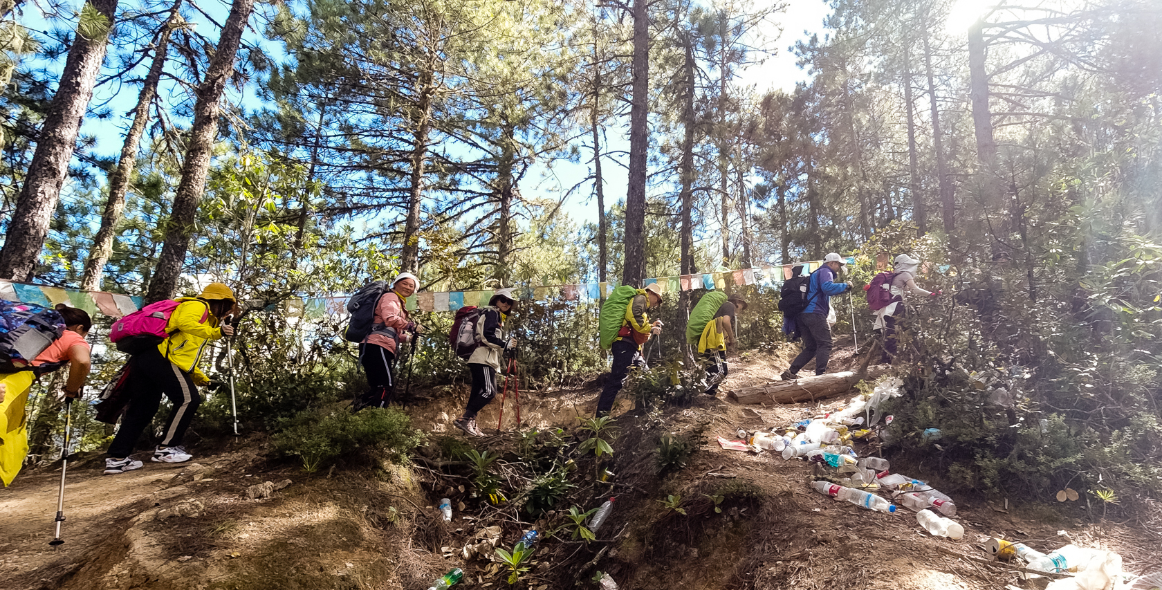 下午4点10分,终于到达南宗第一垭口。从上午10点18分开始的徒步爬山,至今已过6个小时,行程接近8公里。