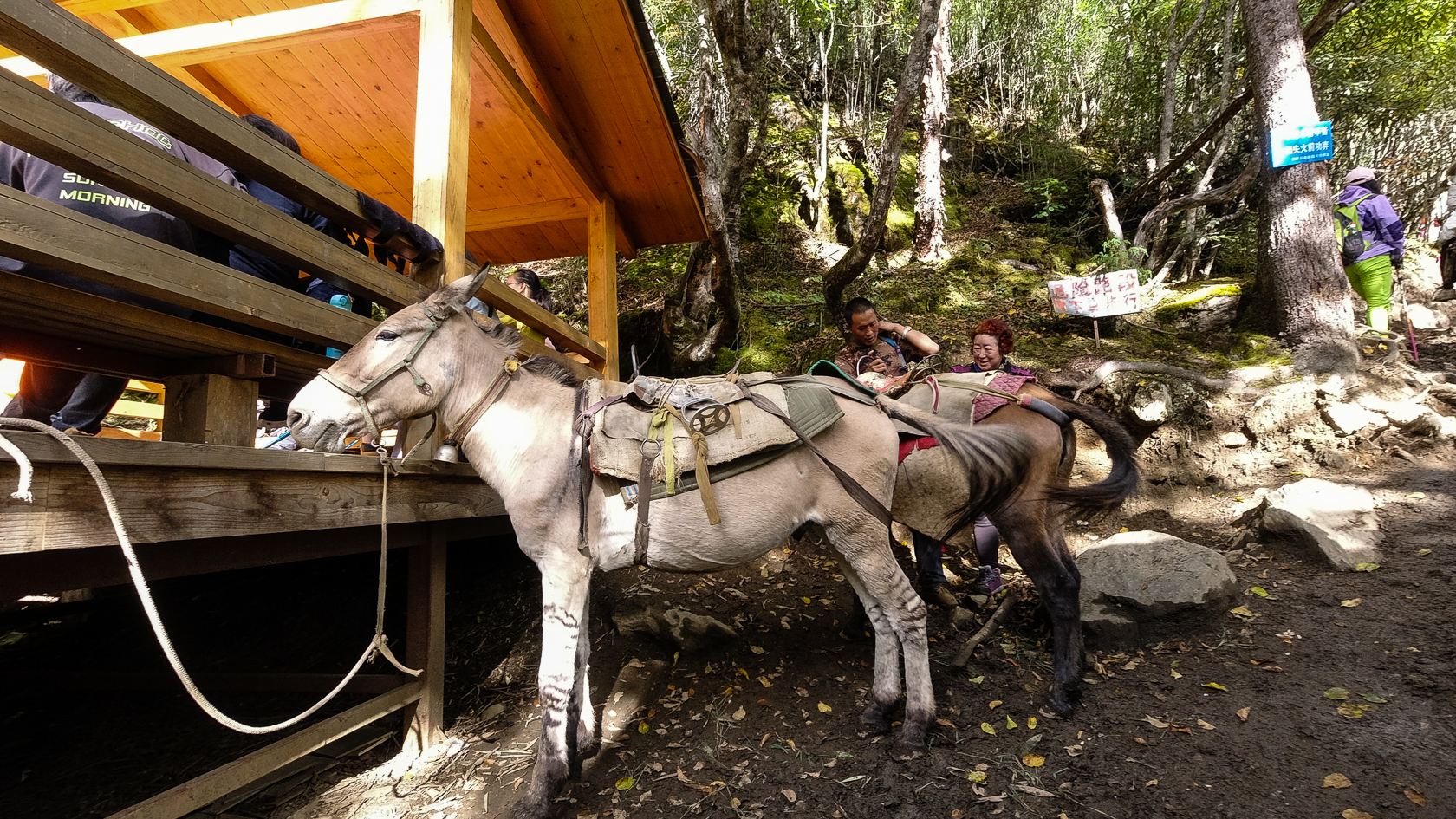 象爬天梯一样在森林间慢步穿行,偶尔要为马儿让道路。这时我才明白马儿的伟大了。这么陡峭的山,鸟儿之飞尚不得过,人行也要愁攀猿,马儿竟然能够带上人货健步如飞,真让人汗颜!
