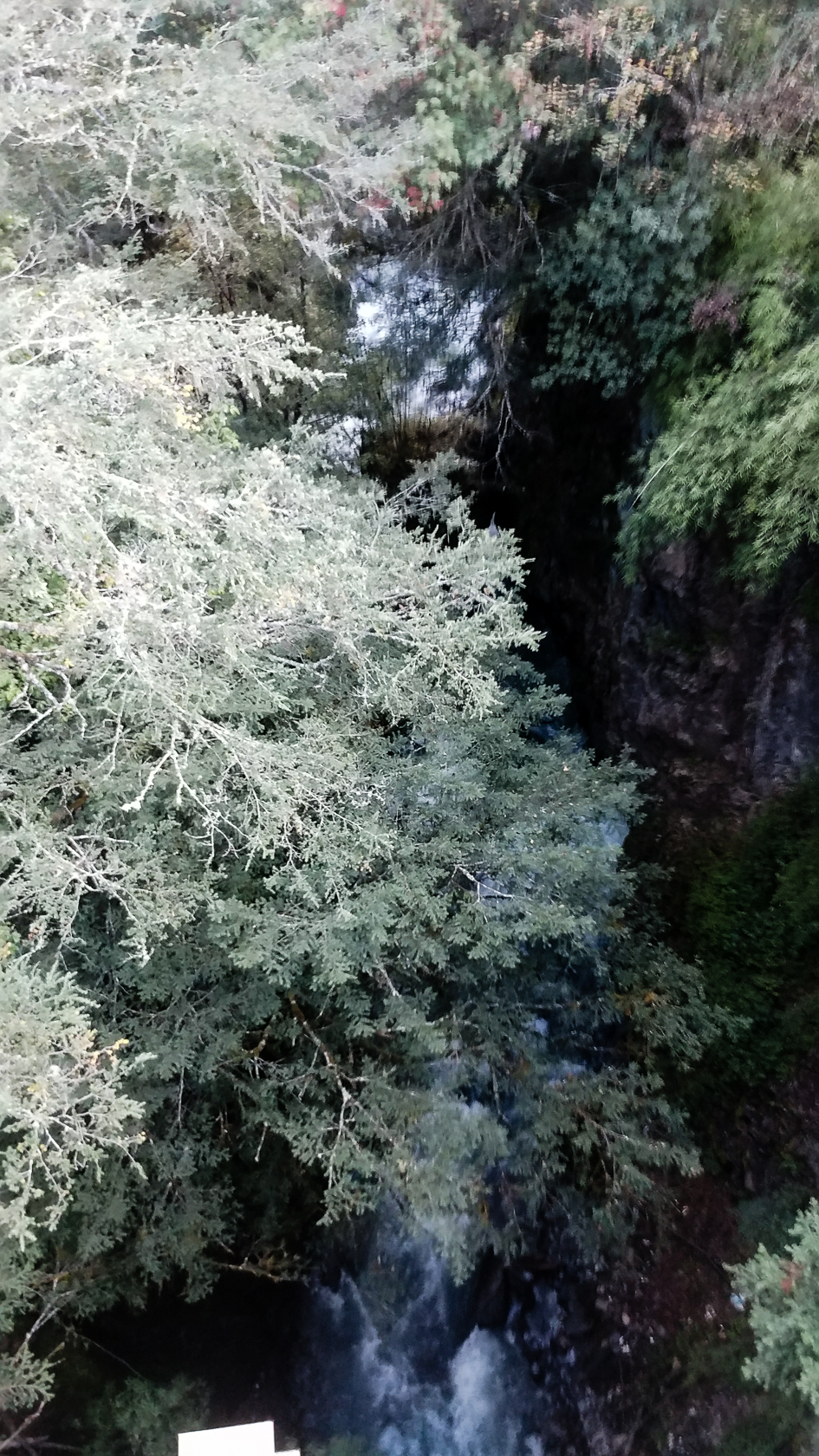 阳光斜射升腾,运气好时穿瀑而过能见彩虹绕身。如今秋冬时节,水流变小,山风过处,有时凌空掷地,有时贴壁泻下,变幻万千,远观如素帛飘飞,近看似明珠垂落。朝圣者视瀑布为圣水,争相沐浴、饮用,还盛入瓶中带回家中供奉,我也用矿泉水瓶装了一瓶圣水,出来的路上一路饮用,果然健步如飞。一笑!