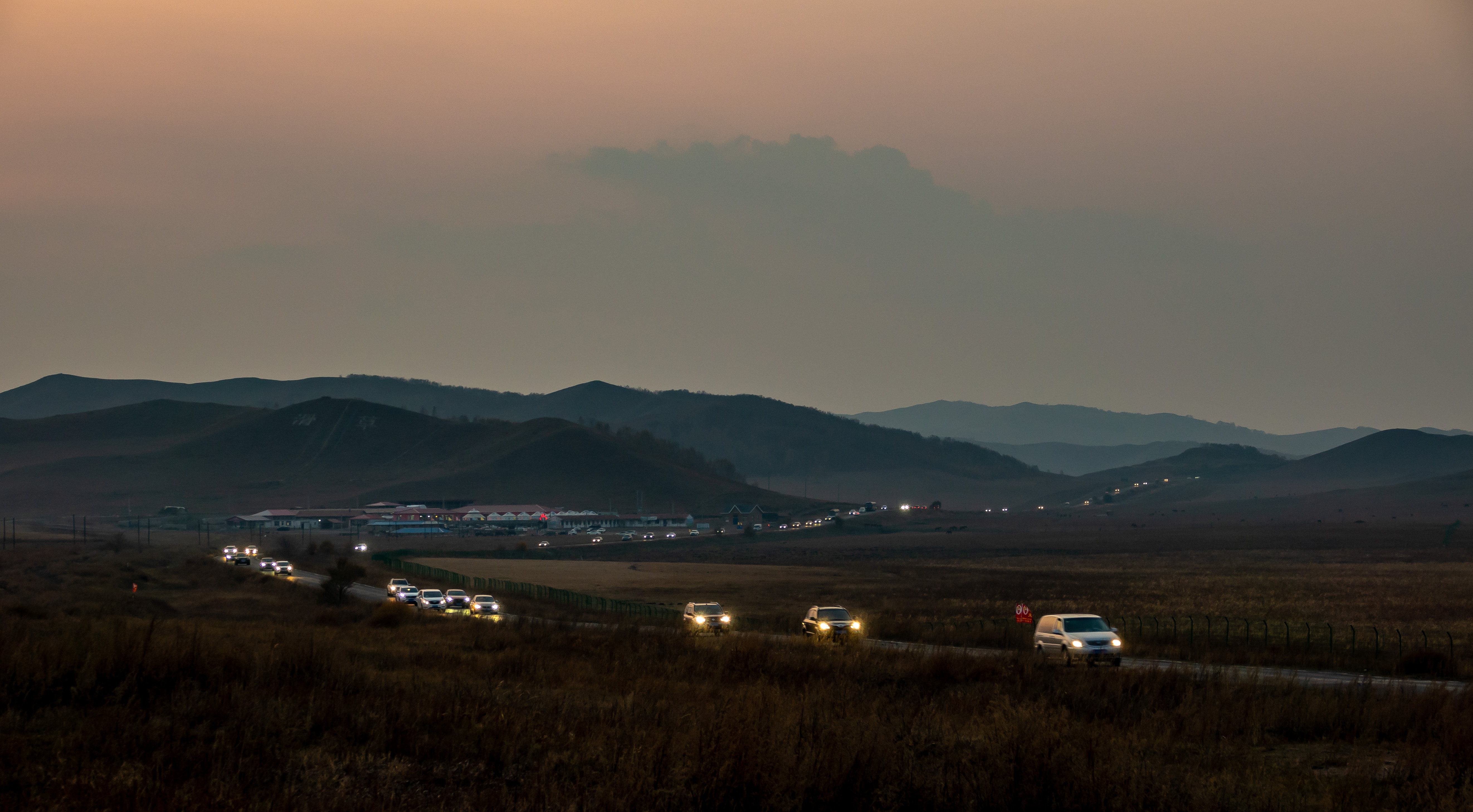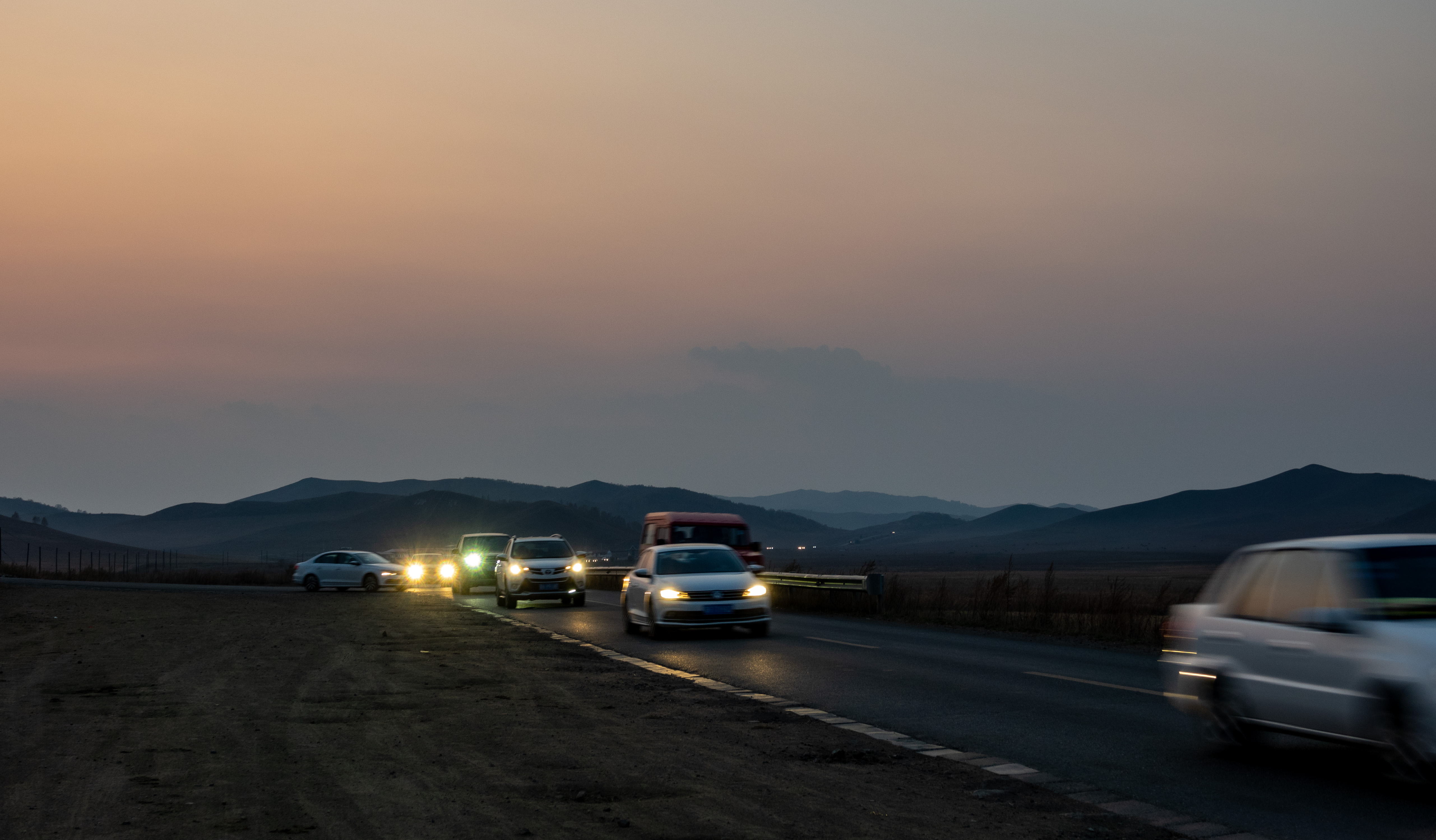 敖包上太冷了,大家实在是等不了蓝调赶紧上车暖和去。第一天就在8小时车程与敖包日落中度过啦,听说第二天早上4点就要起床去看日出。