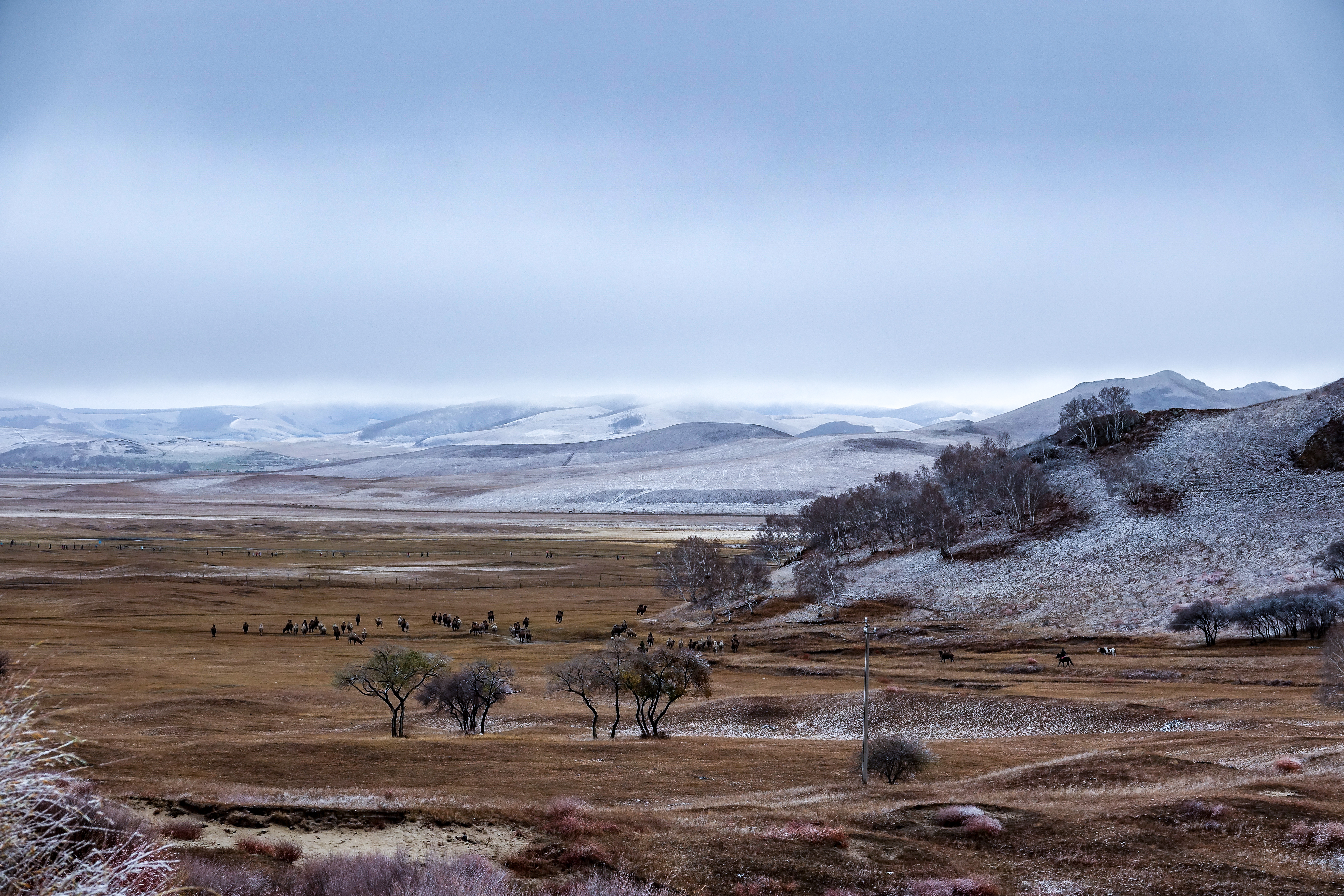 雪中的我们冻得瑟瑟发抖,目送着马群跑完最后一趟远远离开