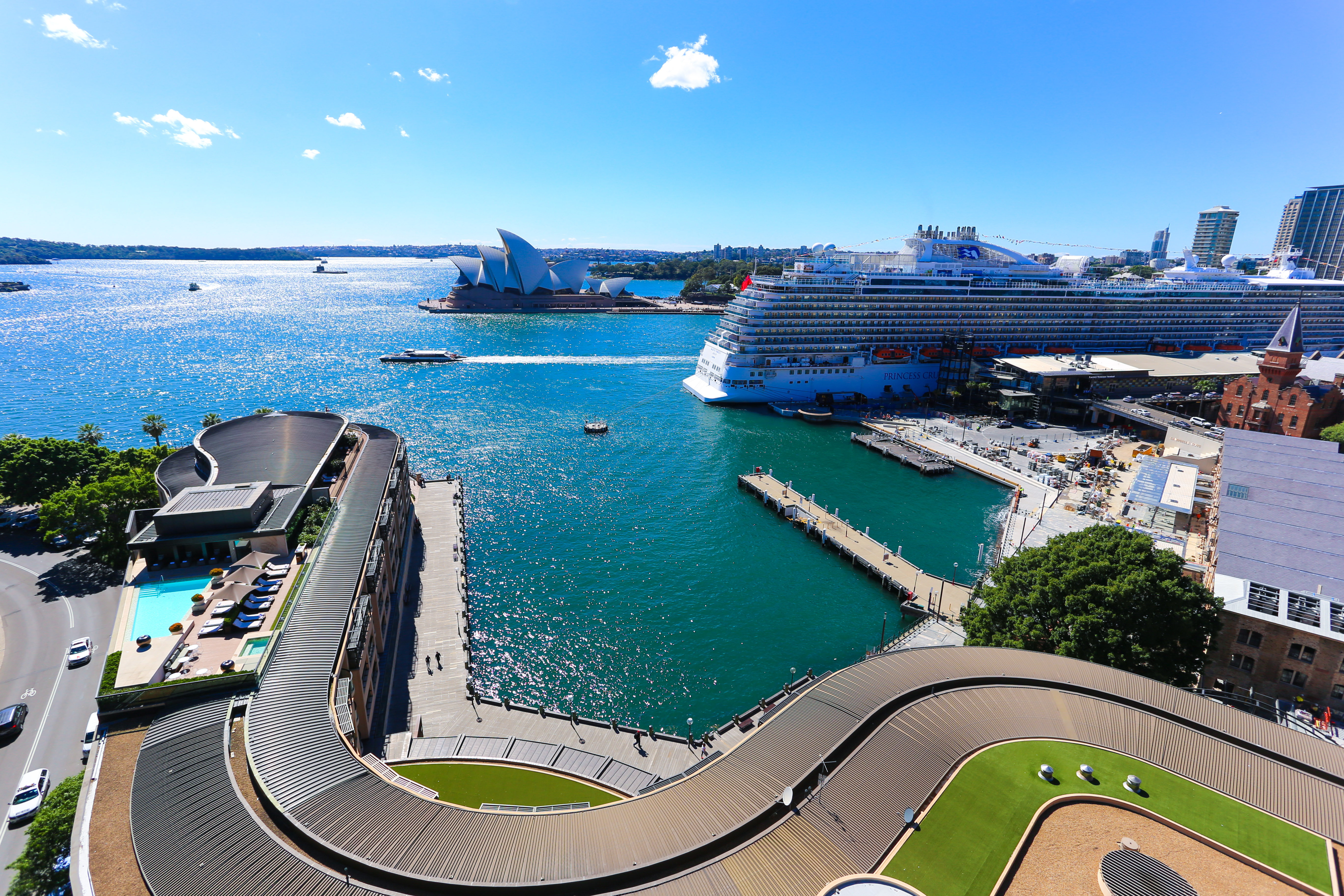 是时候贴一张全景图片啦,这个视觉角度非常棒,看我说的没错吧,那个超大的邮轮刚好在是视觉上遮挡了后方的歌剧院,所以那天从地铁站出来后是相当恼火的。