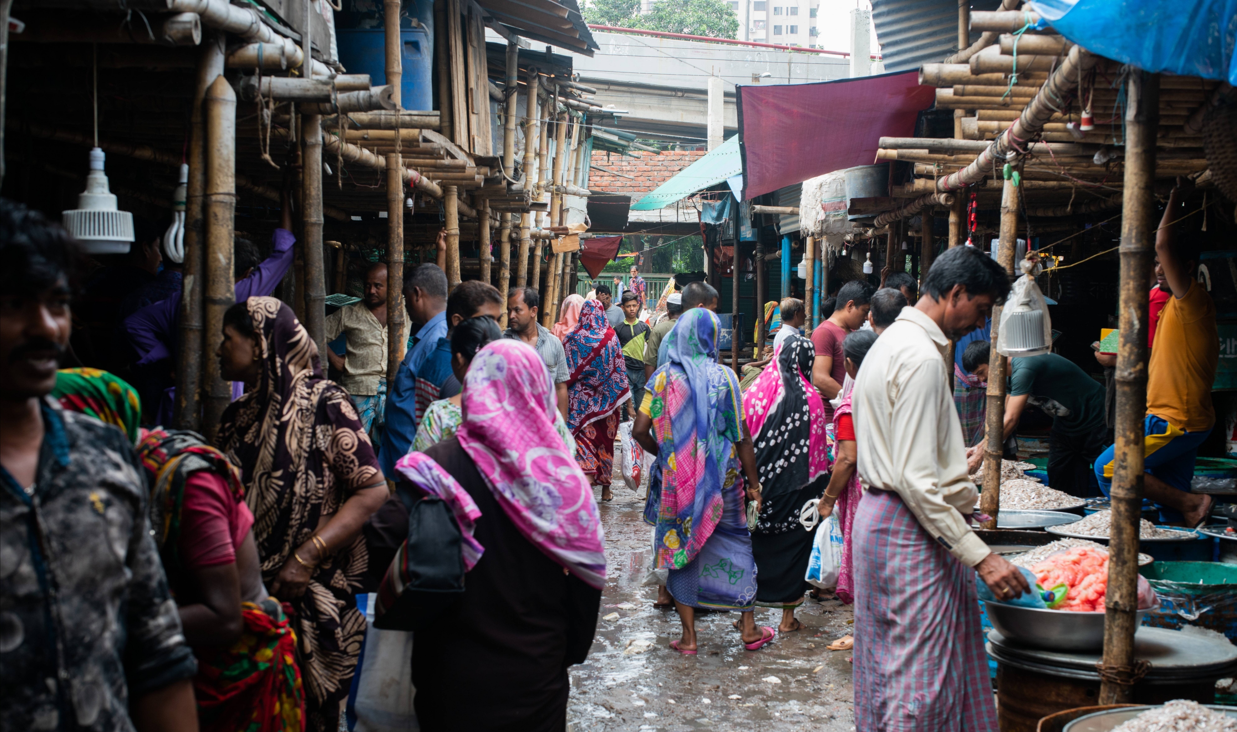 盂加拉女人的服装五彩缤纷,在日常生活中鲜艳夺目,各种花布市场需求很大,但由于整个国家经济落后,人们消费能力有限,所以这种手工作坊的廉价产品运应而生。