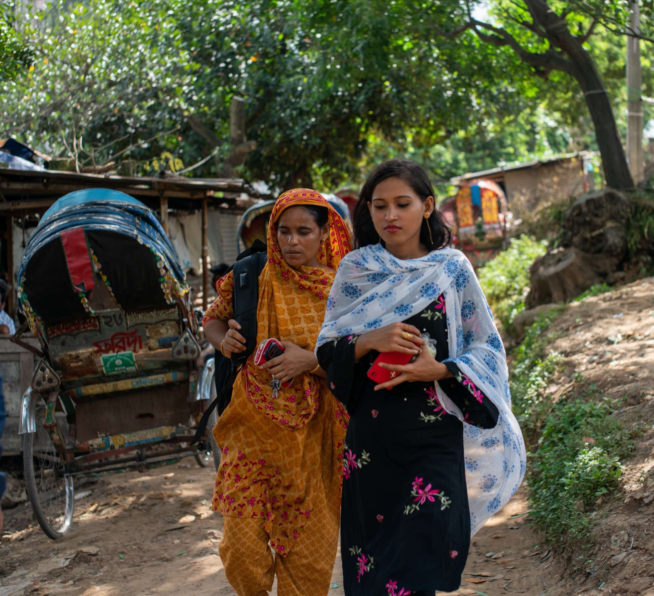 孟加拉街头最拉风的是人力三轮车,大街上三轮车与汽车争道穿梭,相比汽车而言,在市区里人们出行更愿意选择便宜廉价的人力三轮车,不管男女老幼、不论穷人富人、不论上班运货的。