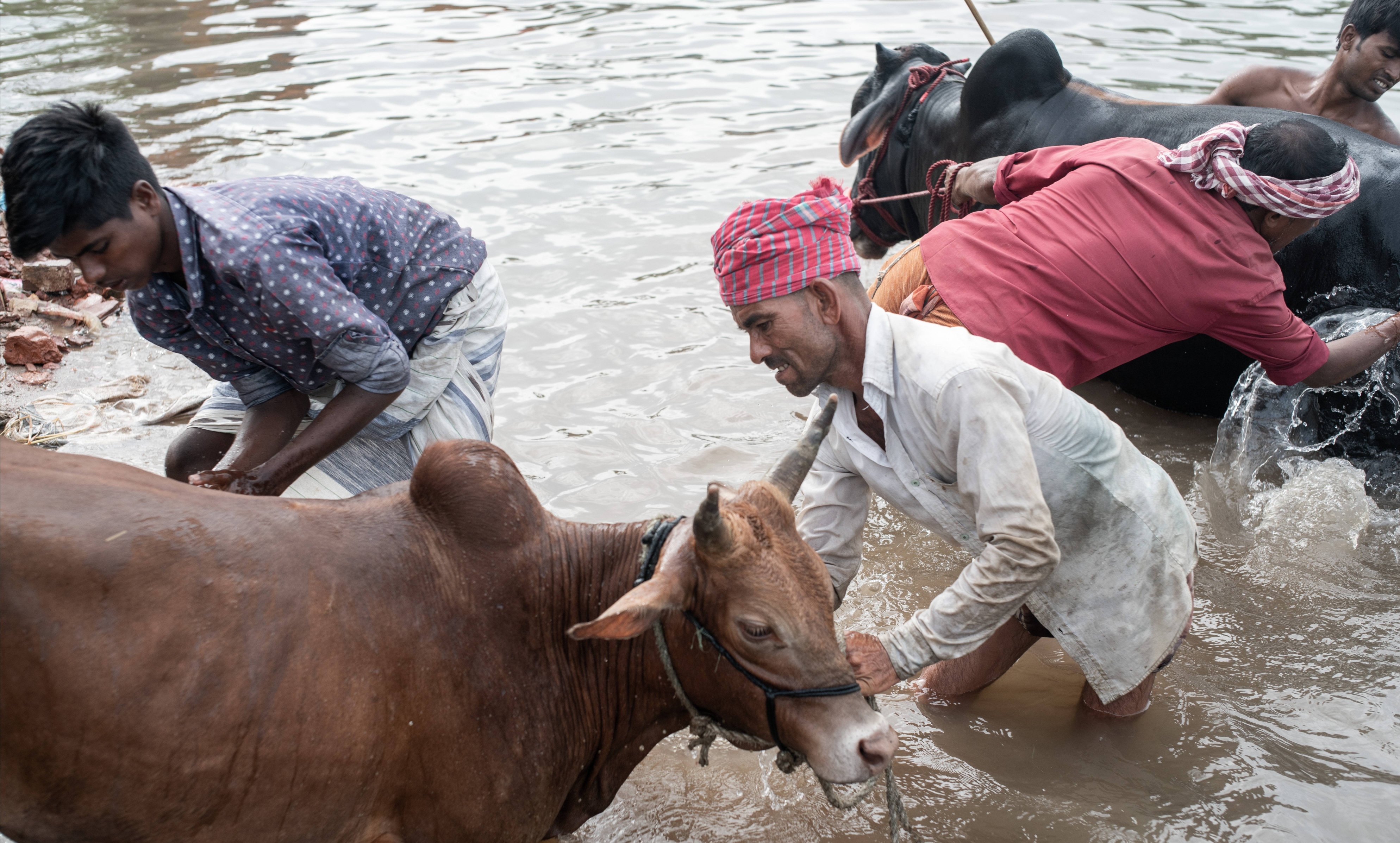 节日的那天,有钱的人家都要买牛宰杀,有的甚至买几头,稍次的买羊。然后分成三份,自己留一份,亲戚家送一份,剩下的分给无钱买牛羊的穷人。因而,头两天,在整个达卡城,到处都能满大街看到赶牛赶羊送货上门的人,这种场景甚是奇特!